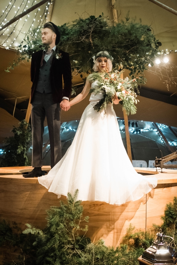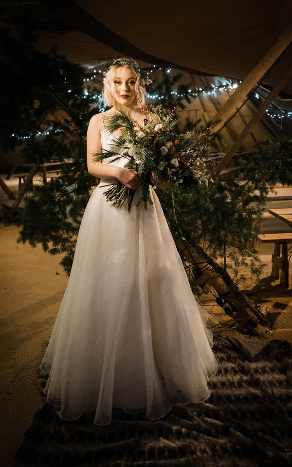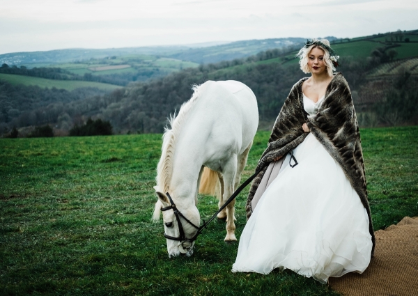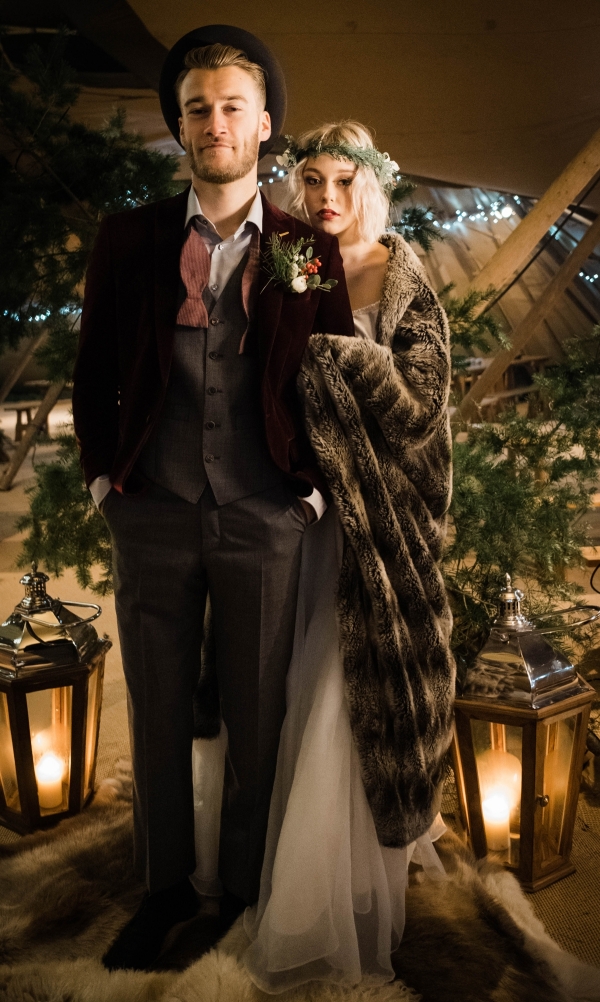As a snow-white horse approaches, the wintery moorland sprawling beyond, the Ice Maiden bride retreats inside the tipi, warmed from within, to continue the celebrations.
