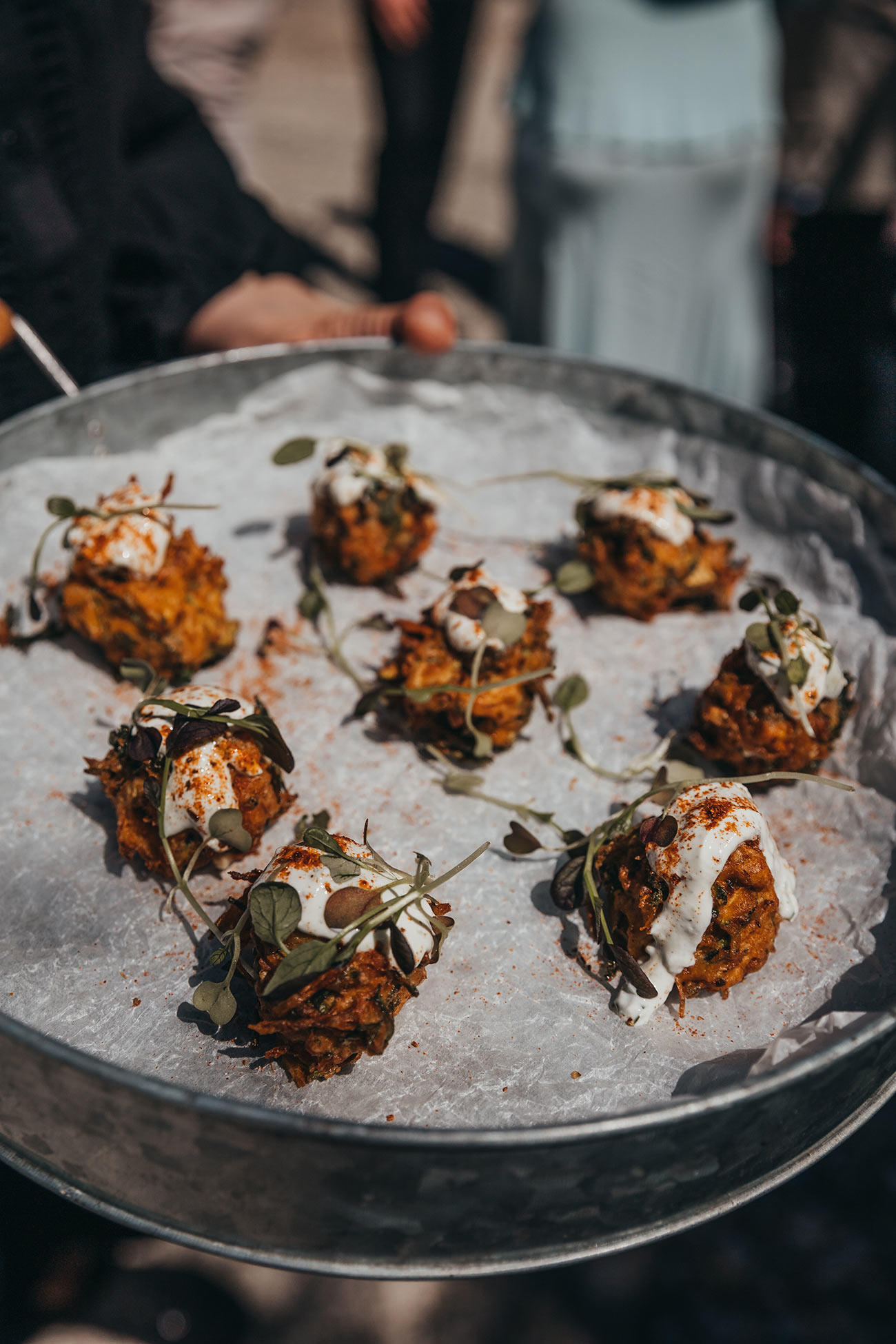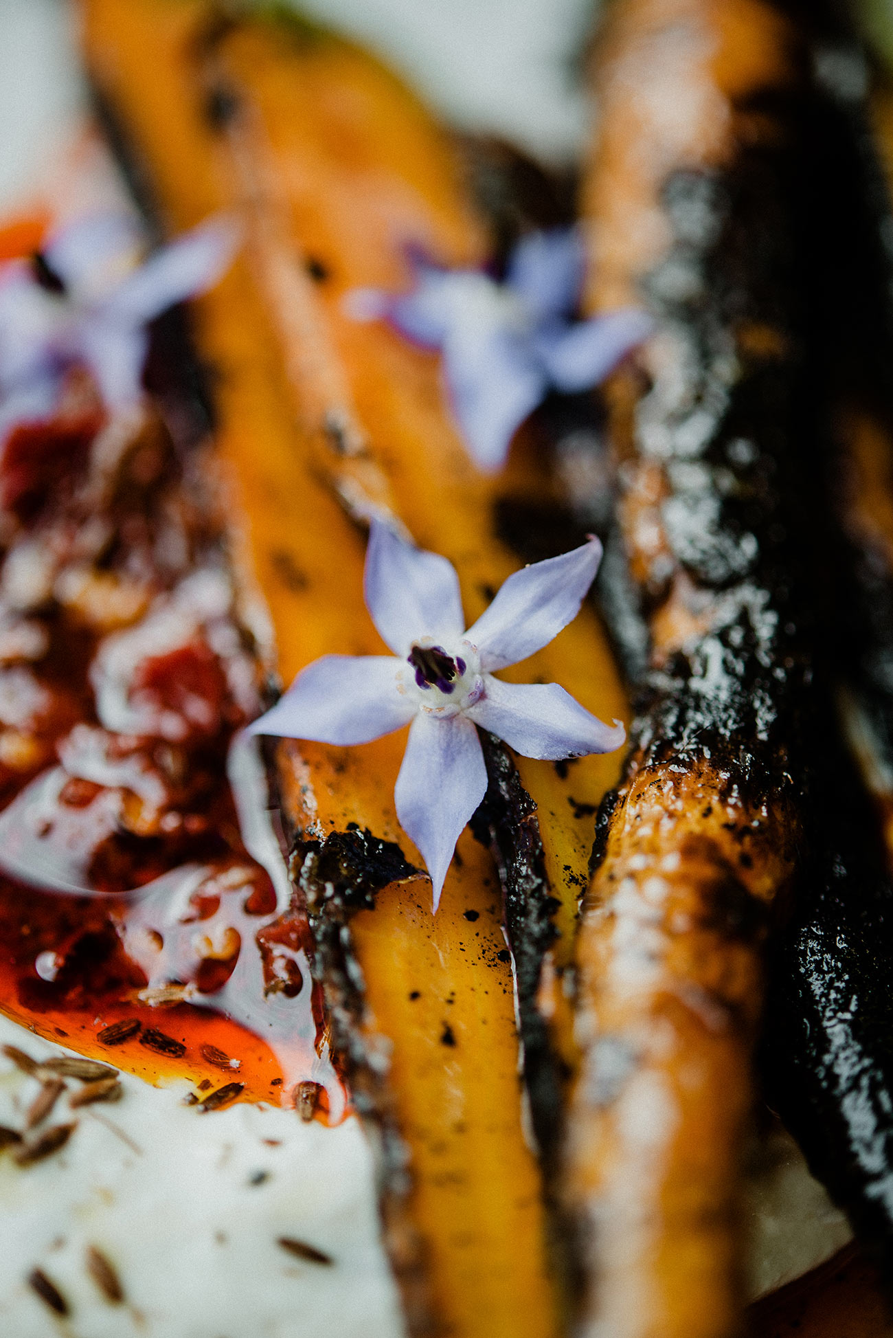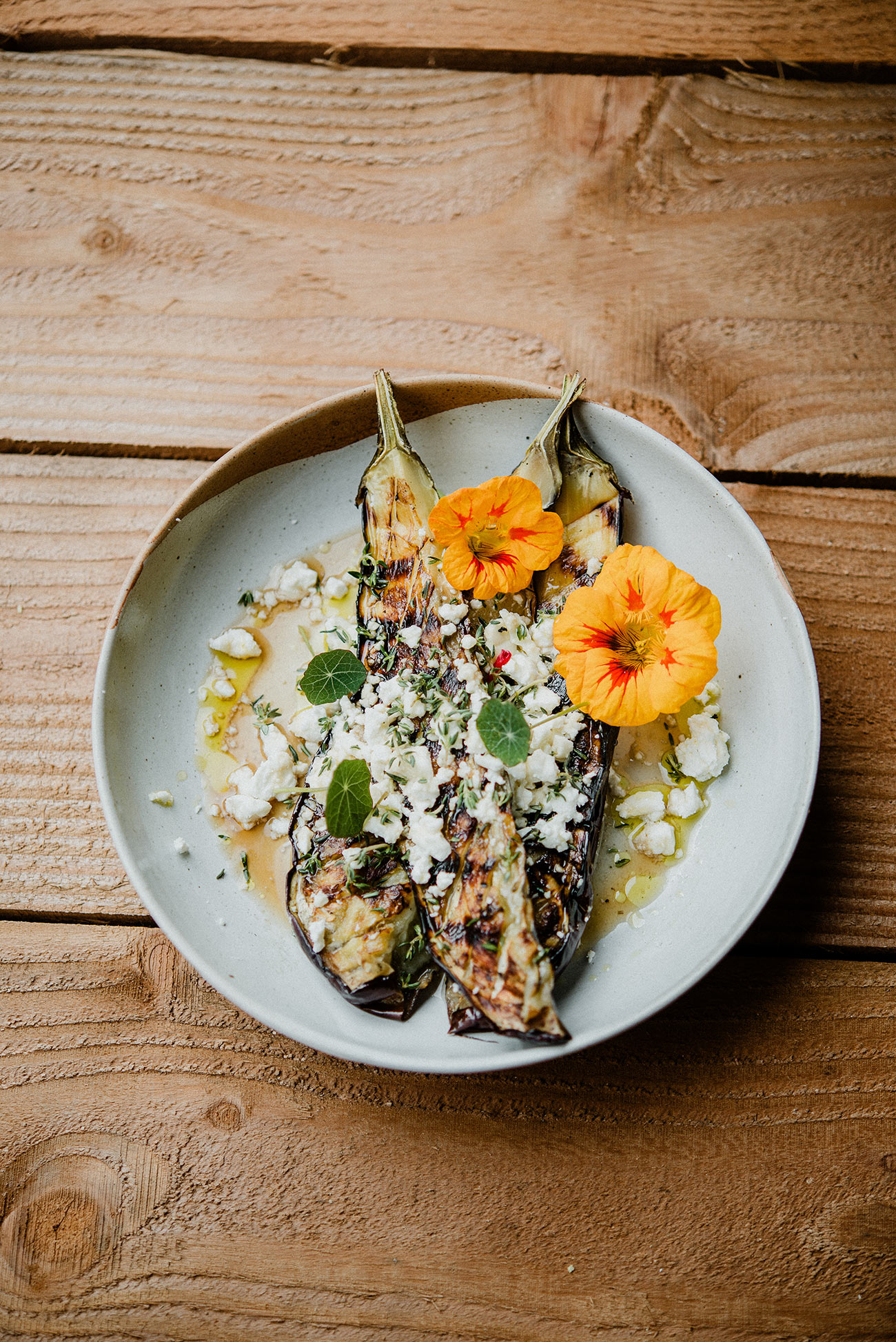 “In terms of adding to the sensory aspect of weddings, we always find that cooking parts of our menus on open fire really gets the senses going,” says Fliss Loxley at Beautiful and the Feast (beautifulandthefeast.com). “Guests get to smell the open fire and the char of the vegetables before they sit down. We use locally grown edible flowers and micro herbs to bring another layer of scent and taste to each bite.”