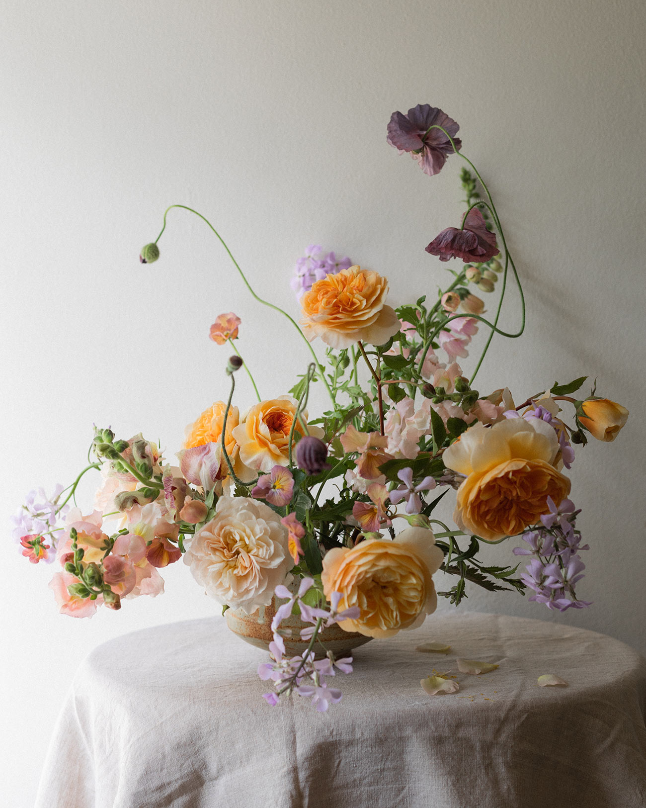Your spring blooms might feature daffodils, paper white narcissus, hyacinths, wallflowers and lilac. “The velvety scent of gardenia, colourful scented primrose,” swoons Helen. “Beautiful scented flowers can often provide stunning designs in large arrangements due to the way they grow – on the branch or used with the foliage they’re grown with,” she elaborates of the powerful and palpable effect of petals. “Think clove-scented viburnum, osmanthus, the cool and citrus dream of mock orange and the fabulous selection of spring blossom.”