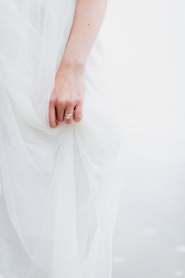 "The dress is Annabelle by Jenny Yoo in Ivory. Orignally designed for bridesmaids, the dress has four tulle panels that hang from the waist and so can be styled in a multitude of ways. Simple, minimal and understated, yet with the capacity to be draped, folded and flowing; this dress paired with a crown of golden laurels by Mignonne Handmade, was ideal for an understated Grecian muse look. Alongside Monica Vinader's Siren Ring, which makes a curiously beautiful alternative to traditional engagement rings."
