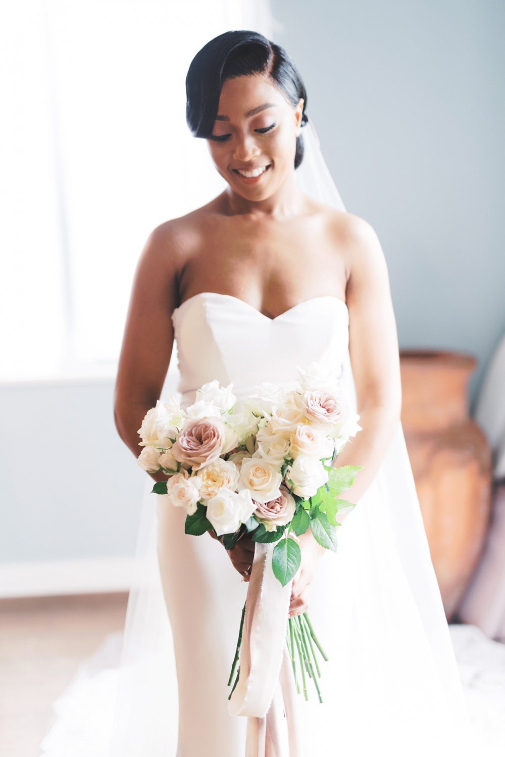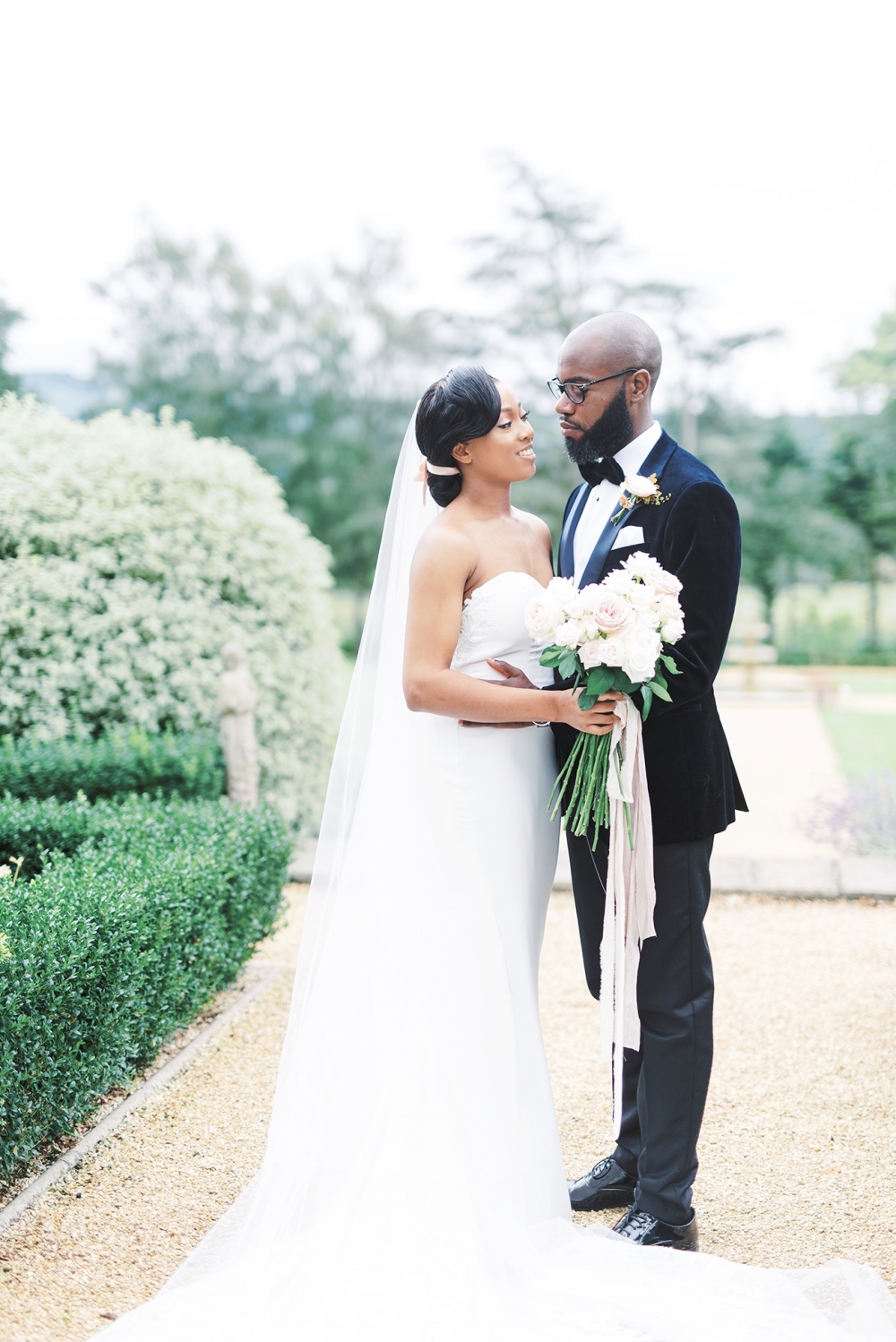 Deciding they wanted a 'black tie wedding on an English country estate', Deer Park Country House ticked all their elegance-meets-romance boxes, and they set to work on a theme of soft pinks, white and gold, with the help of stylist and planner Fern Godfrey. 'She brought our vision to life perfectly and was the perfect calming presence throughout a stressful planning process ' in the middle of a global pandemic,' says Shanice.