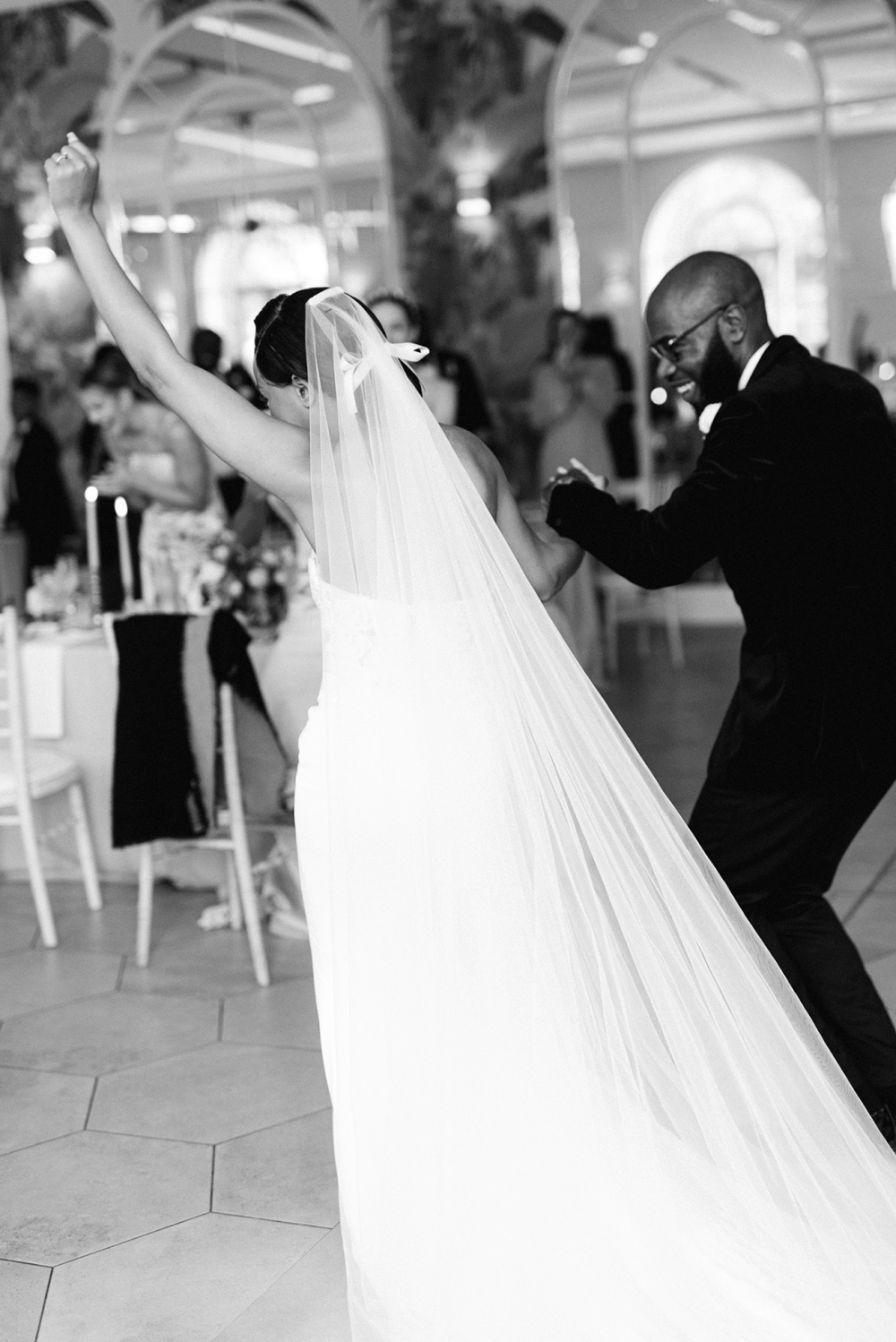 As the skies cleared, the guests were able to venture outside, before the newly-weds danced their way back indoors 'to rapturous applause' ahead of dinner. 'We wanted to create a magical atmosphere for dinner, as this was where guests would really celebrate the day together,' says Shanice. 'With lots of candlelight and an abundance of blooms, the scene was set for hours of laughter and happy tears while almost every guest made a speech. It was unbelievably special, and that intimacy is a big plus to having a smaller wedding.'