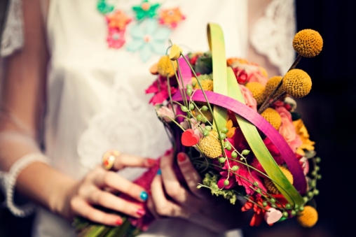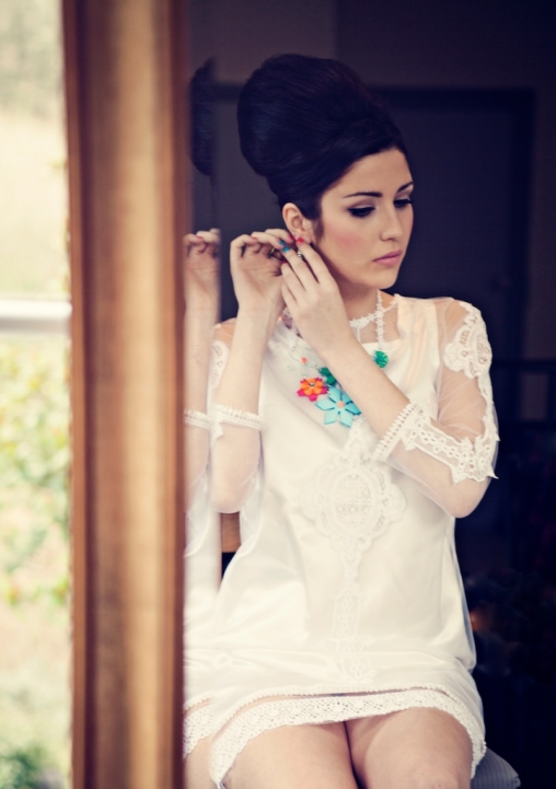 Blue Fizz Events took the psychedelic colours and fashions of the sixties as their styling cue for this gorgeous shoot. "The sixties was an iconic era for all the right reasons: colour pop, brave hemlines, music and the power of art in an amazing decade that was serious about fun," comments Blue Fizz Events' Tracy Edwards. "We wanted to bring all these elements together to inspire today's brides seeking something a little different, while reflecting the uniqueness of the stunning setting of Broomhill Art Hotel."