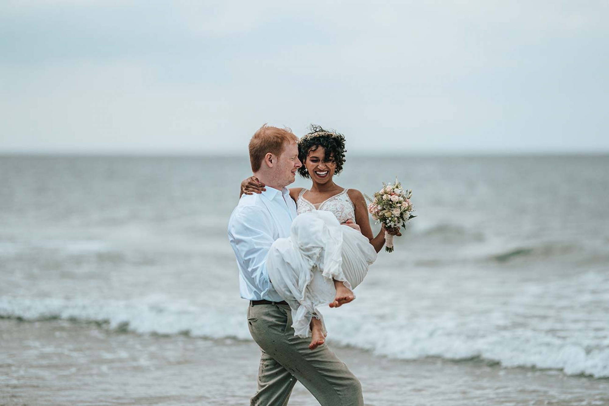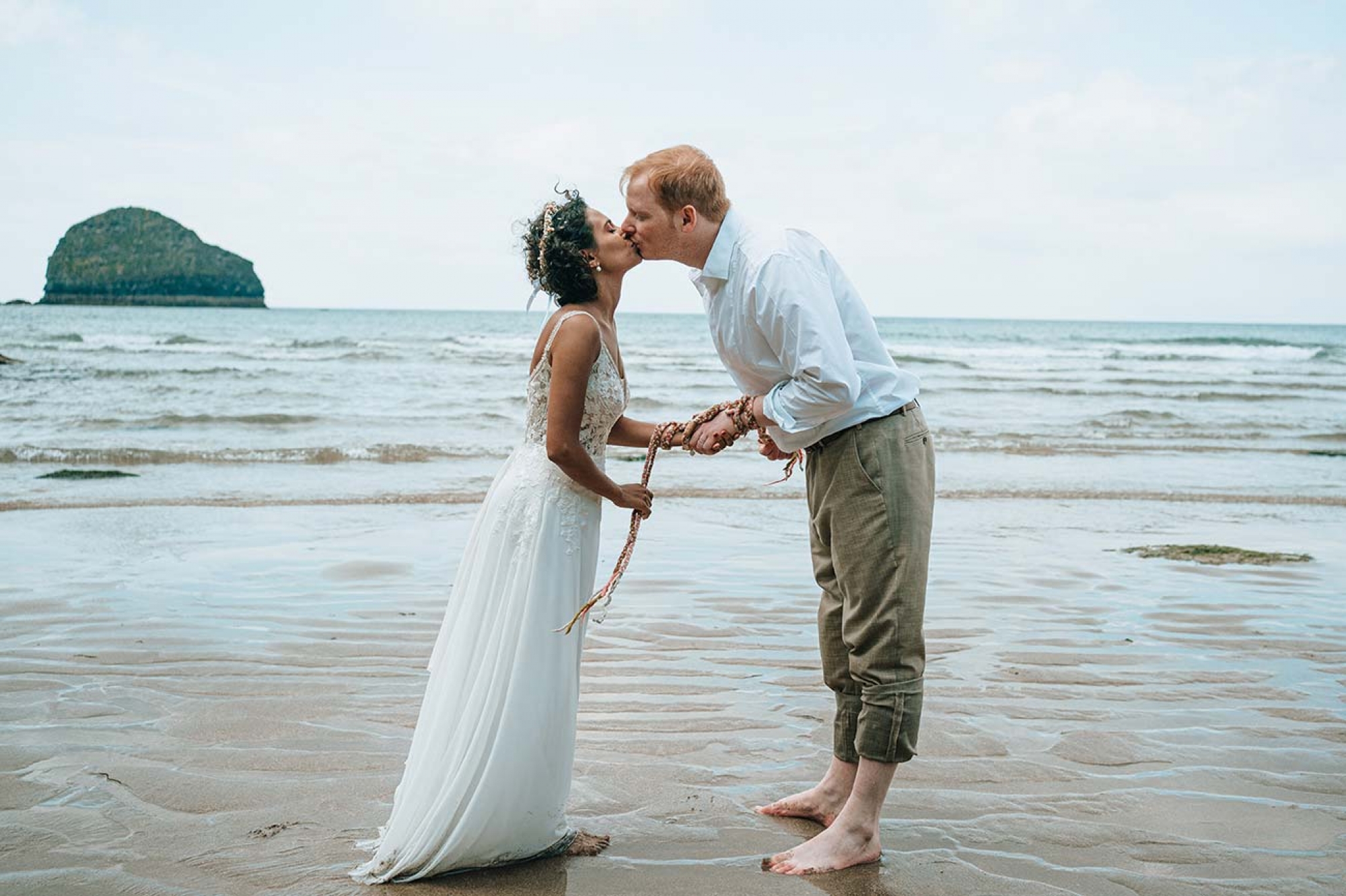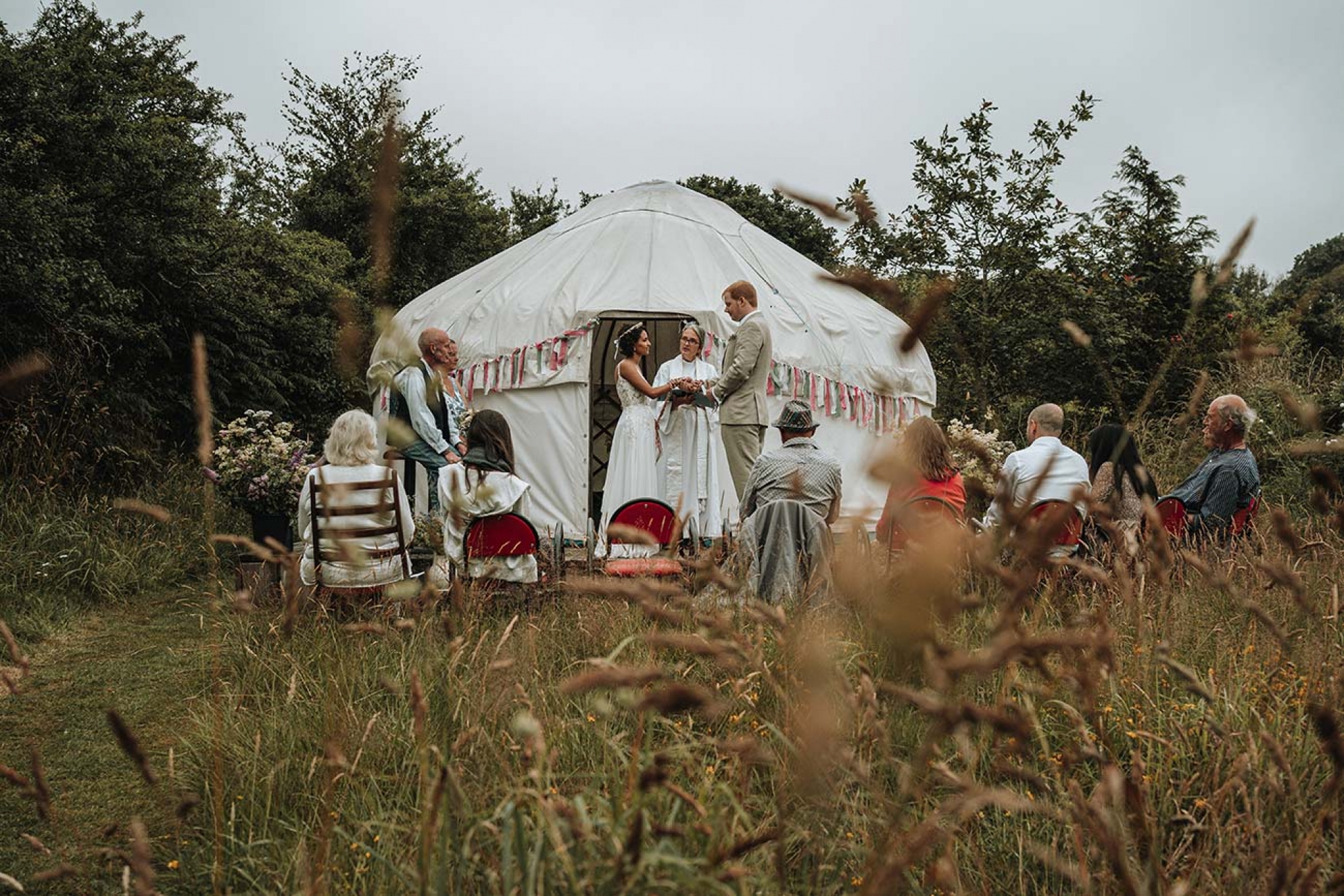 “Our wedding day was perfect! Having a small number of guests meant the planning went smoothly. We had a ceremony outside a yurt in a field filled with wild flowers. We then went to Trebarwith Strand beach for photos followed by lunch at the Mill House Inn with our guests.”