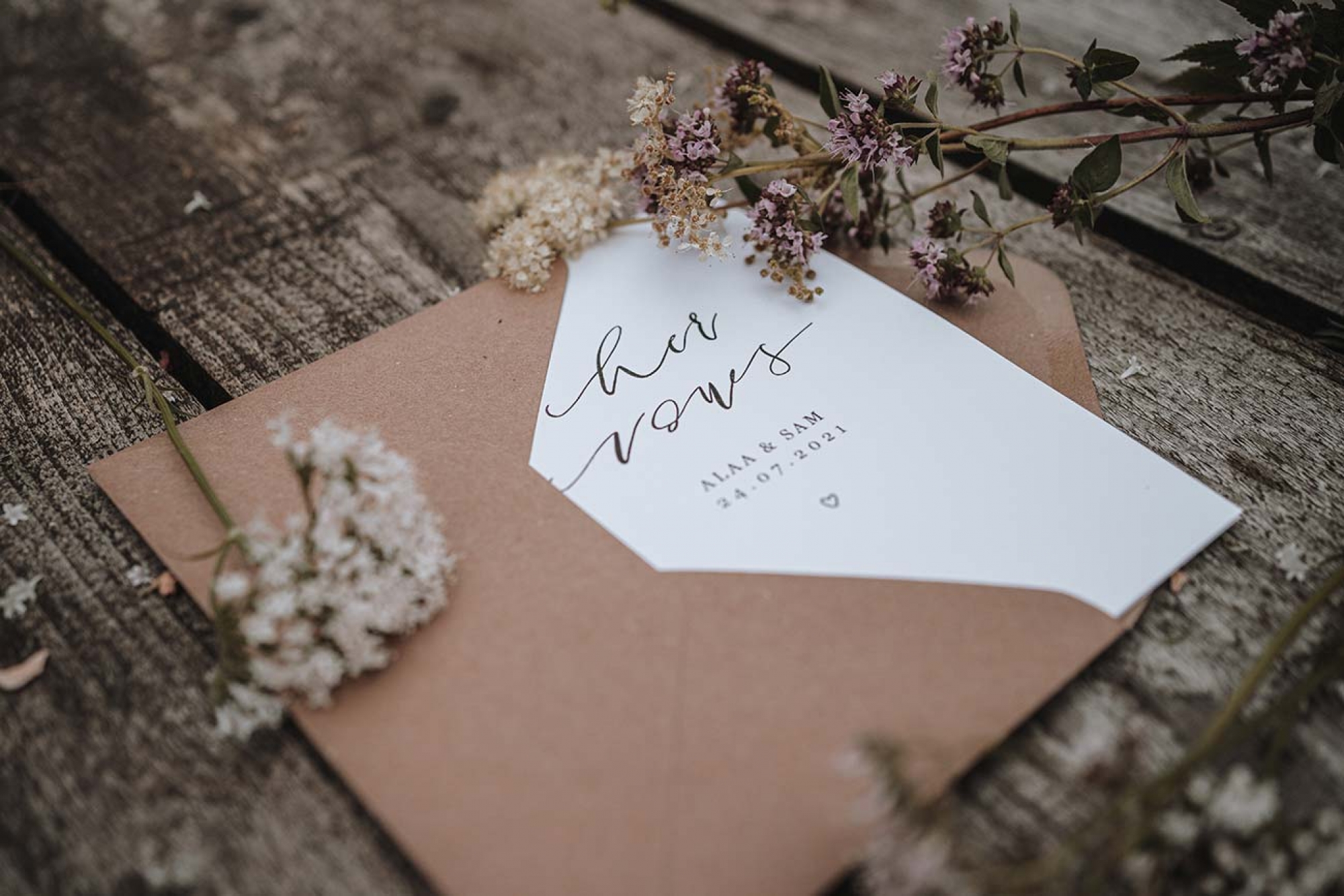 “It was a slow, quiet morning. We were far too relaxed for what was meant to be happening that afternoon! The ceremony was held outside The Studio at Frieda and the Moon under a flowery archway. We were right there in the elements, and it was perfect. We were told it would go by in a flash, and it did. Luckily for us, this wasn't the end of our day.