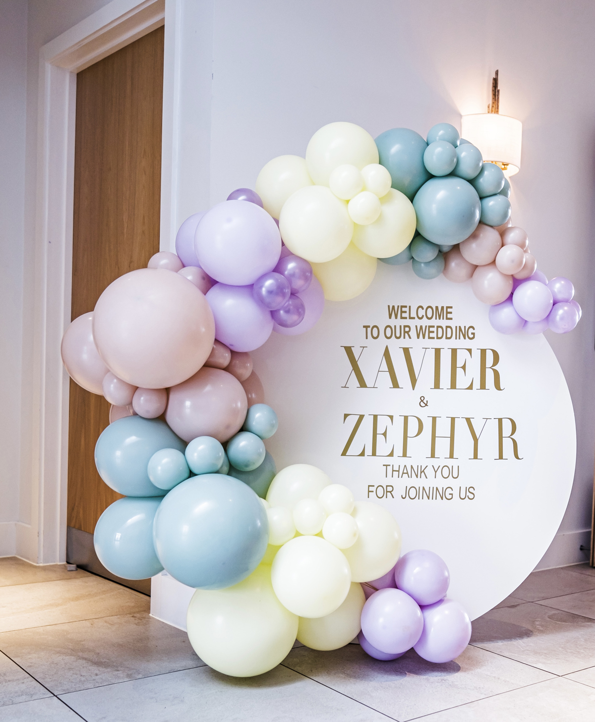 Balloons, welcome sign and Copper frame - Snazzy Balloons snazzyballoons.co.uk