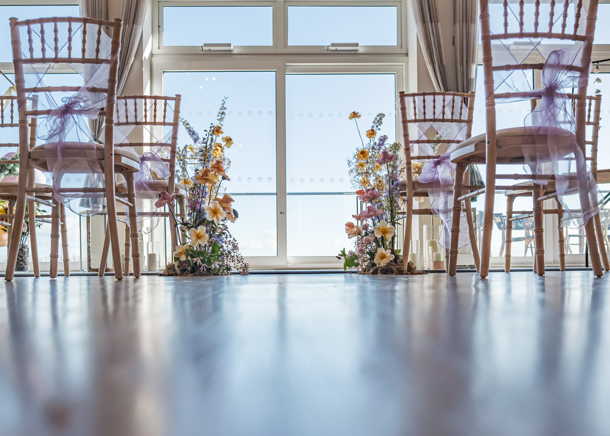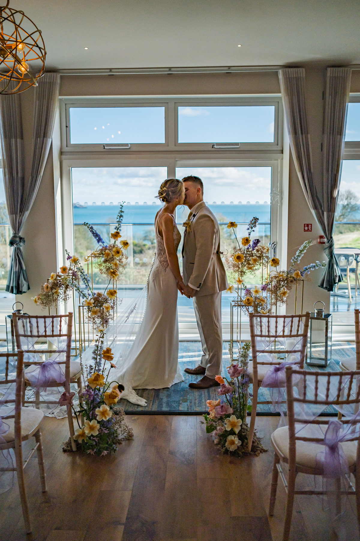 Shot on location at Falmouth's newest venue, Above the Bay, the result not only showcases the natural surrounds and celebratory spaces, but evokes the season in all its sweet glory for a wedding scene packed with personality and panache.