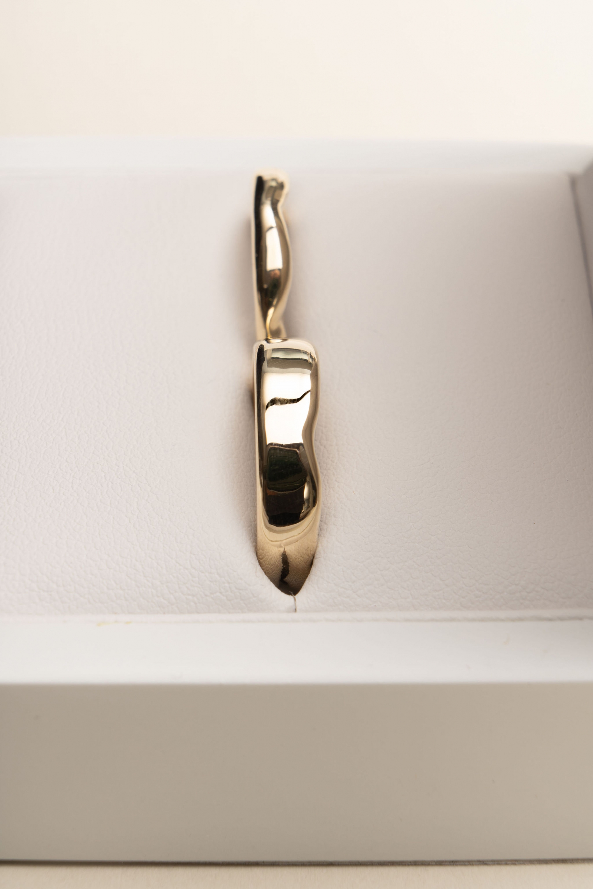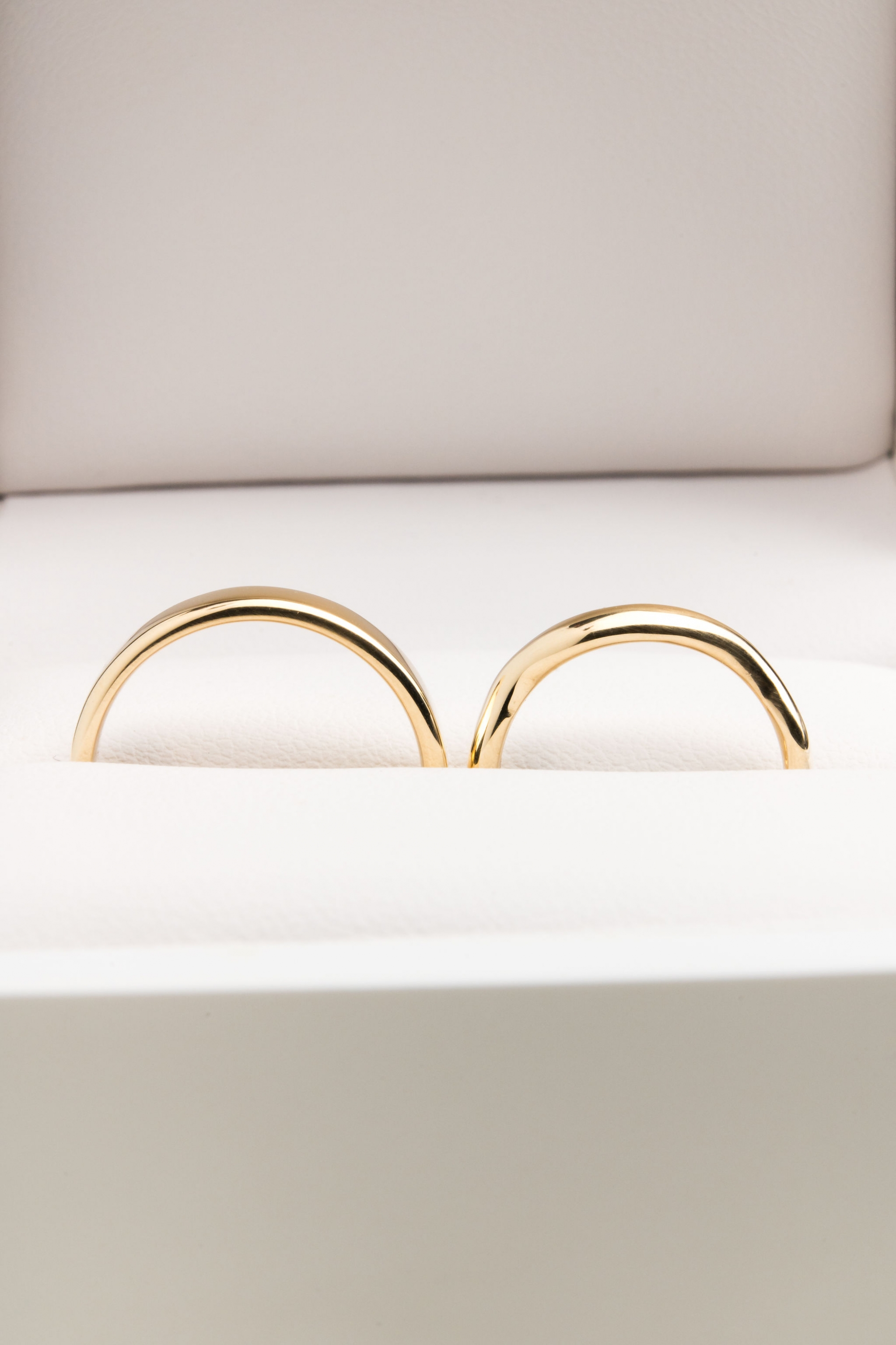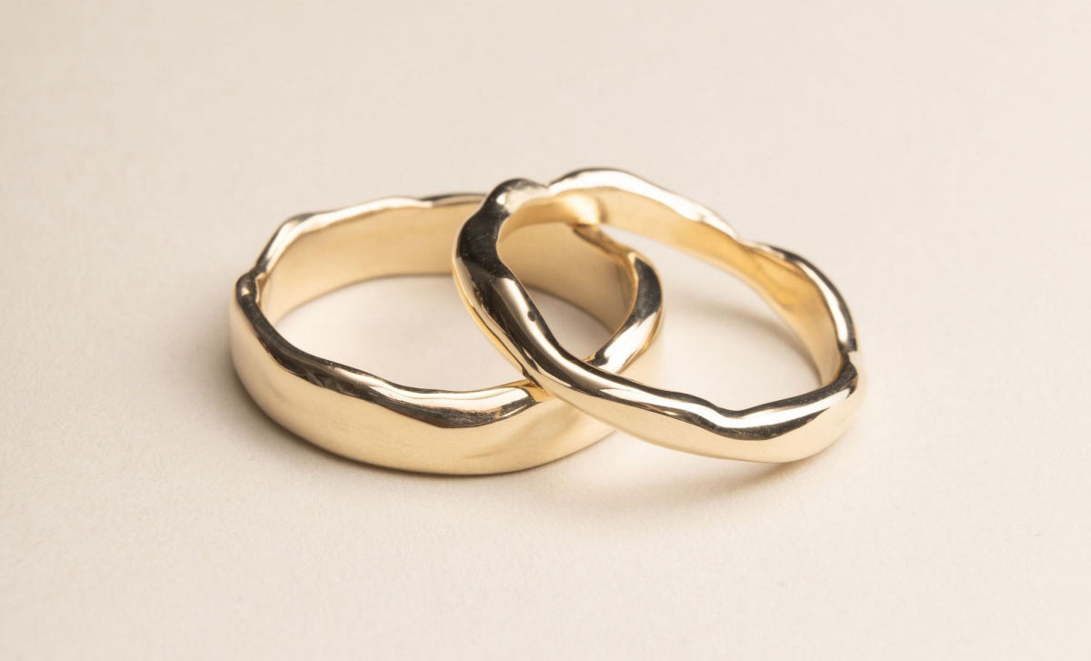 Pick from gorgeous gold or silver tidal, signet, beam, wave, coast or mermaid rings, all of which boast a mirror like shine and feel smoothly sculpted as if sea-worn. Undulating and seductively curved metal evokes the shapes and movement of the sea to represent the couple's connection to the coast and each other while showcasing Naomi's signature style.
