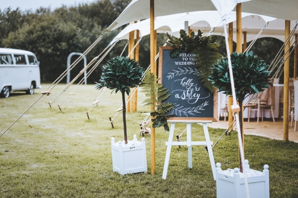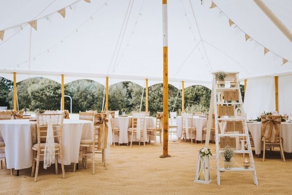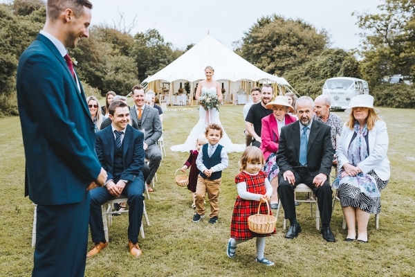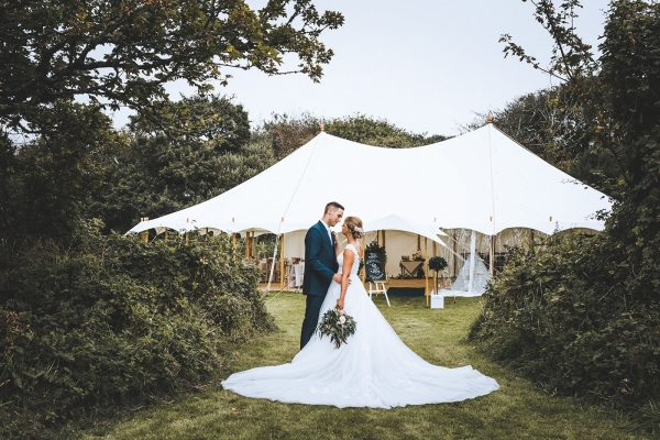 "Being a new venue, we wanted to have a 'trial run' and build on our contacts, getting to know the suppliers in person, so that future real weddings can run without a hitch!" explains Little Oak Cornwall's owner, Emma. "We're also keen to support local businesses and try to be green/eco as much as possible. To embrace the countryside and outdoor surroundings, we wanted to include this in the shoot, therefore we used simple/rustic/natural ideas with lace, pale pinks, soft greens and even foliage from around the meadow to bring it all together."