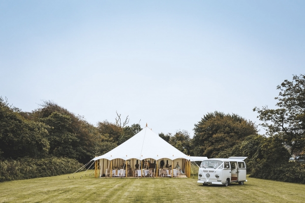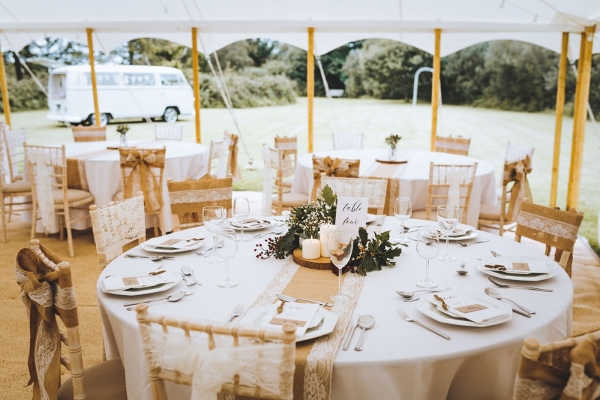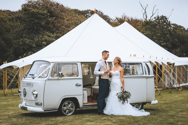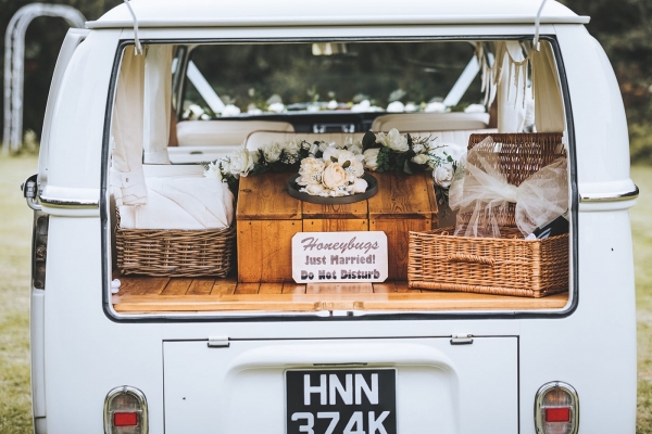 From the rustic style stationery to the semi-naked cake, pared-back tabletop decor complete with natural textures, stunning flowers and neutral tones to the smattering of props such as a vintage step ladder and VW campervan, the backdrop is as beautiful as it is bespoke.