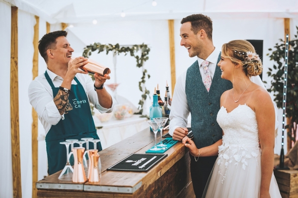 Here, an intimate al fesco ceremony between the gorgeously dressed couple features personalised touches and is followed by a drinks reception complete with bar and mixologist, while a dessert table that beautifully extends the theme of the day with a soft, colour pop palette is packed with sweet goodies for guests to snack on.