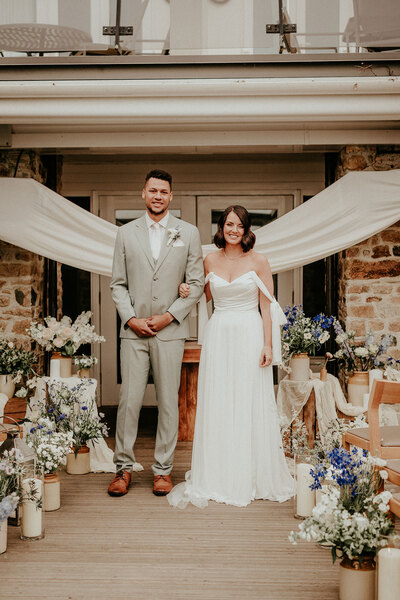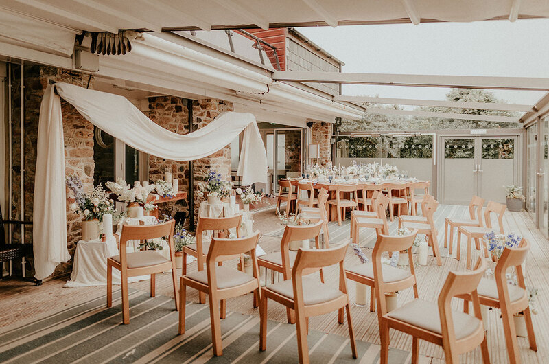 Ceremonies and receptions unfold across three settings – the spacious, stylish dining room, the light-flooded conservatory with a fully retractable roof or the decked terrace with sweeping views across the bay. Whether you’re envisioning a sun-drenched summer celebration or a wildly romantic winter gathering, The Cove at Maenporth enchants year-round. Picture sundowners on the terrace beneath a golden summer sky, or a winter scene aglow with fairy lights – the hum of the tide in the distance and heat lamps casting a gentle warmth as the evening draws in.