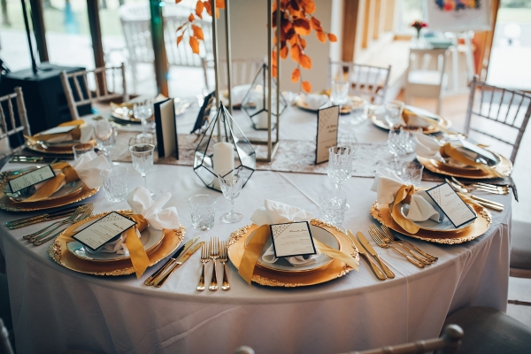 Visualising each stage along with the flow of your day ensures your chosen aesthetic is carried in every aspect to enhance the feel while showcasing the venue to maximum impact. Here, an aisle dotted with lanterns and flowers makes way for a beautiful floral arch and flashes of outside greenery to evoke a beautifully natural look spliced with colourful blooms, which is continued by tablescapes arranged with a similar scheme.