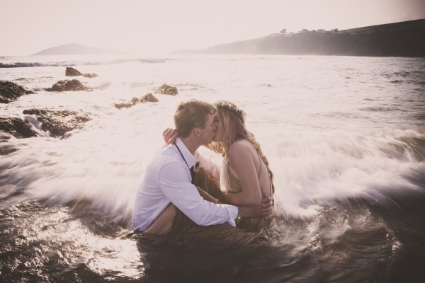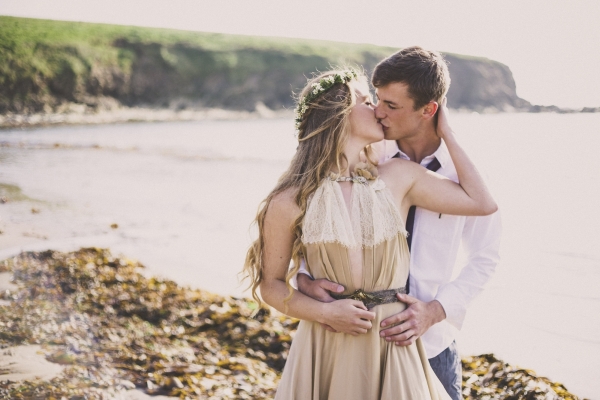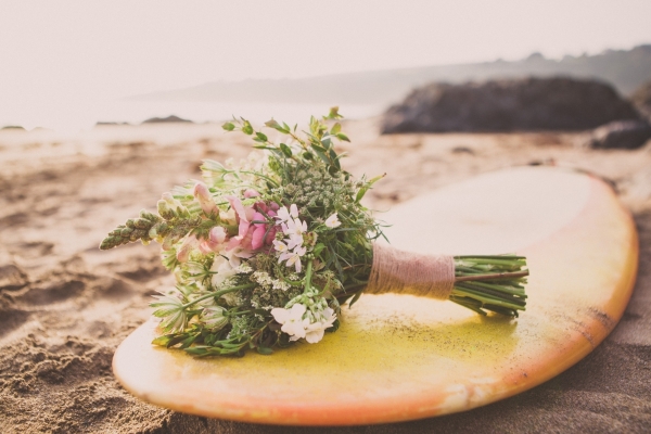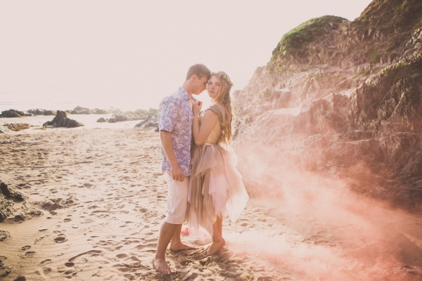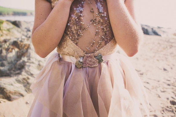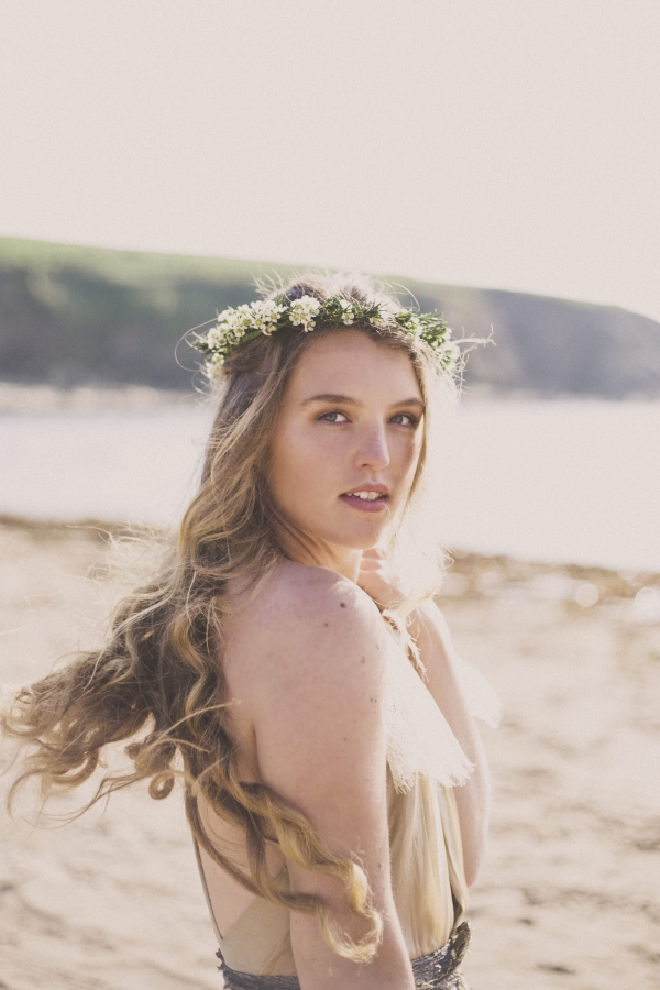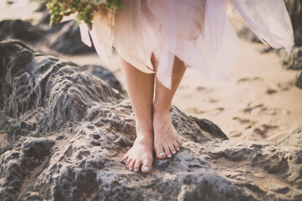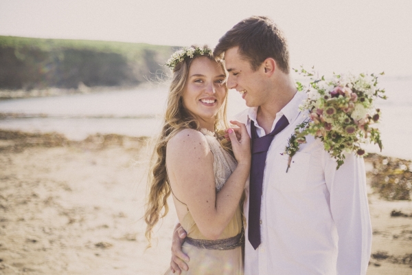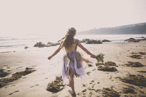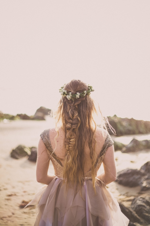 Channel the breezy barefoot bride vibe with an ethereal gown worn with eye-catching embellishments for a swoon-worthy wedding by the sea