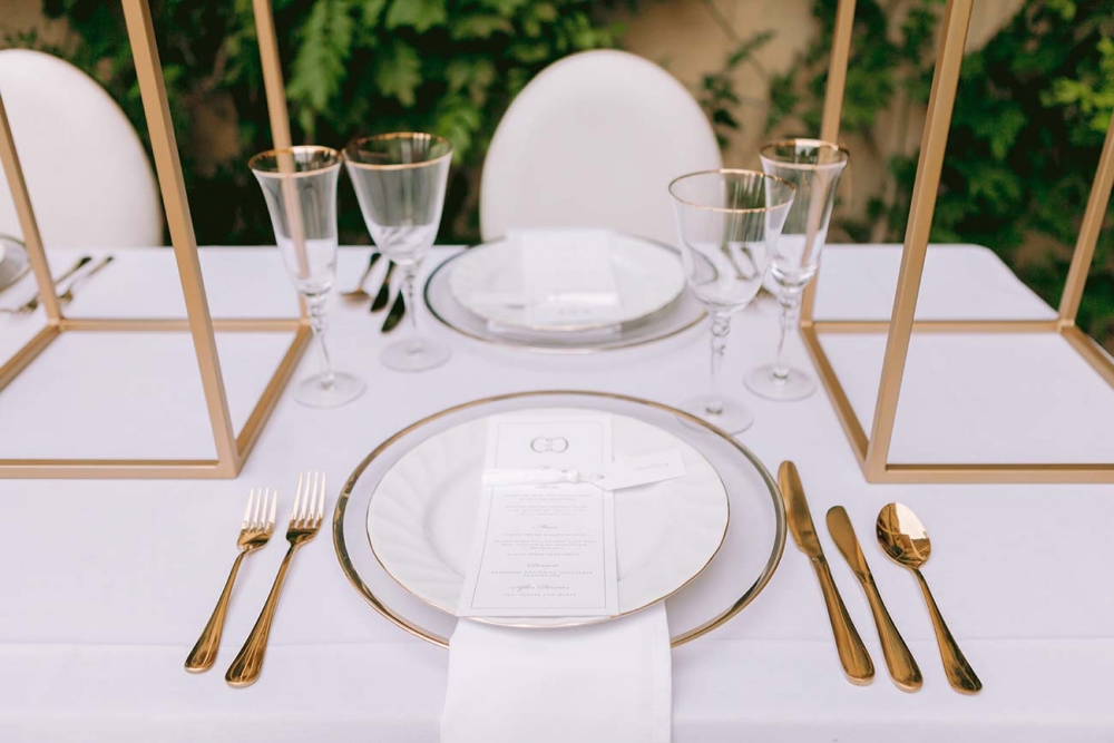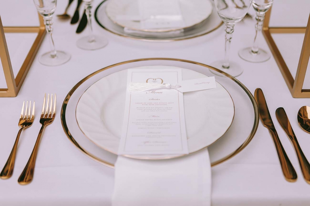 'I wanted to take a classic theme and add a little injection of colour whilst still keeping the overall mood luxurious,' explains photographer and stylist Jen Shoubridge of Jennifer Jane Photography. 'Adding some subtle accents of gold is a great way of bringing the warmth of colour to your day while keep the overall aesthetic and ambience timeless.'