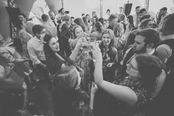And with entertainment ranging from bell ringing after the ceremony to an acoustic drinks reception set and evening performance by live band, Over the Threshold ' along with giant Jenga, a Polaroid photo booth, and wooden skittles ' the day proved a fun-filled and sun-drenched celebration to remember.
