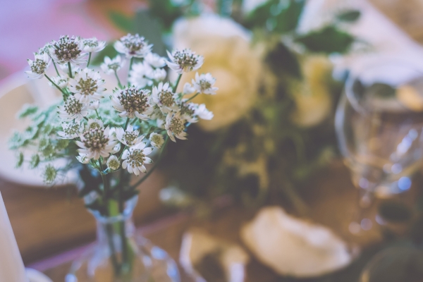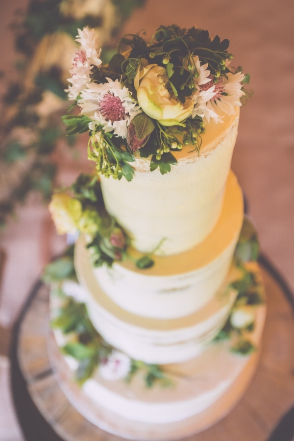 Local ivy, lily of the valley and other greenery and seasonal blooms featured in everything from the bouquets to buttonholes, milk churns, table garlands and flower-filled glass bottles. Meanwhile, fairy and festoon lights, a disco ball and a firepit created a wonderfully atmospheric party space.