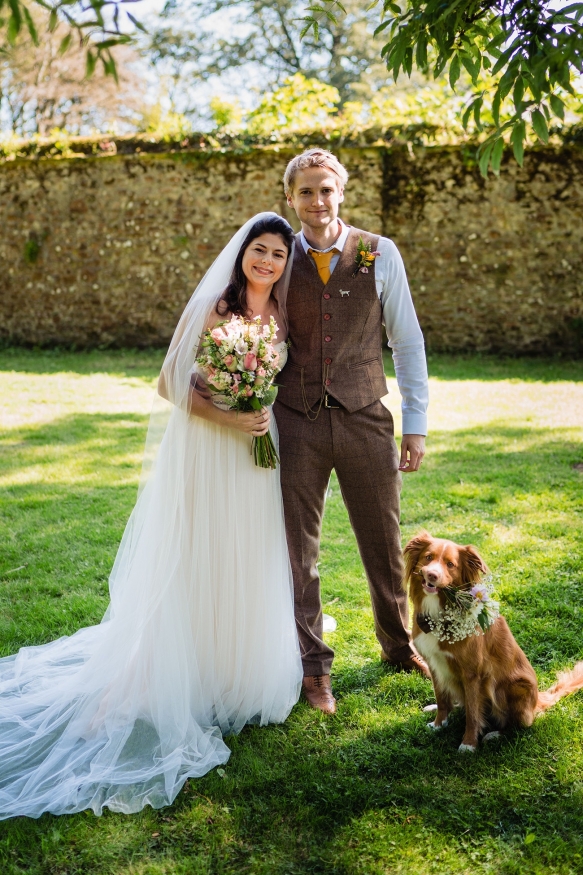 'At the end of the walk by a lake, Tom got me to hide (we play a game where one of us hides and Pippin runs to find them) and after a slightly long wait Pippin, dressed in a dog tuxedo, found me and Tom proposed. The plan was for Pippin to carry the ring in a little basket but he jumped in the lake so that didn't go to plan!' laughs Amy.