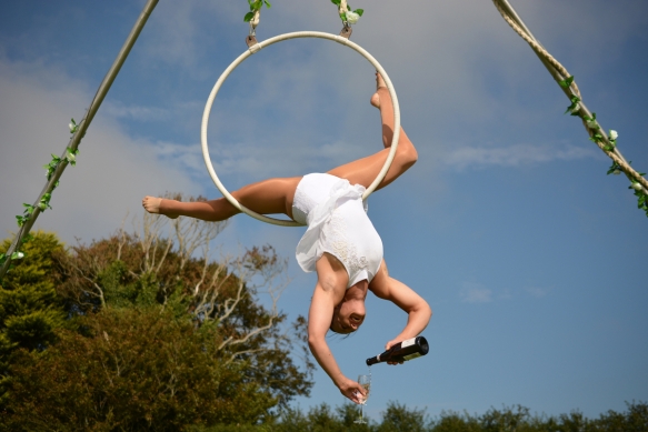 A showstopping option for a wedding, The 2 Lisas offer an elegant and dazzlingly unique aerial performance to captivate your guests during the celebrations. Choose a gentle-paced, freestyle movement to music as your guests enter, or even have your welcome drinks poured from above by an aerialist hanging upside down! The two talented acrobats will then perform the big spectacle moment, guaranteeing a wow-worthy performance. There's even an option for the bride or groom to climb up and spin around in the hoop - a photo opportunity not to miss!