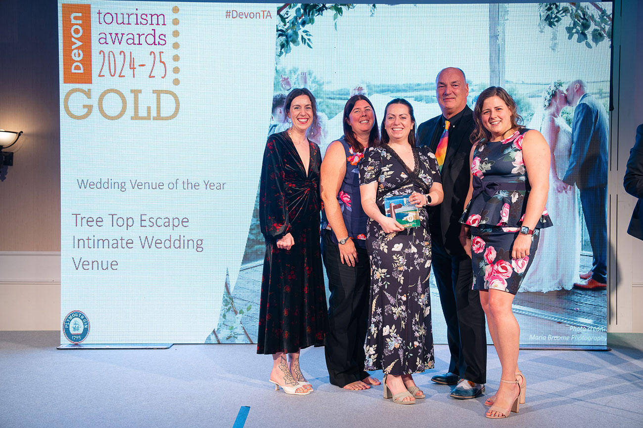 Nestled amidst a sprawling rural estate in North Devon, Tree Top Escape is a dream destination for a secluded, intimate wedding, allowing couples to marry amidst the leafy treetops and rolling countryside with up to 14 guests in attendance. The beauty of the venue and the dedication of its team have been recognised at the Devon Tourism Awards 2024 as it scooped the gold award for Wedding Venue of the Year.
