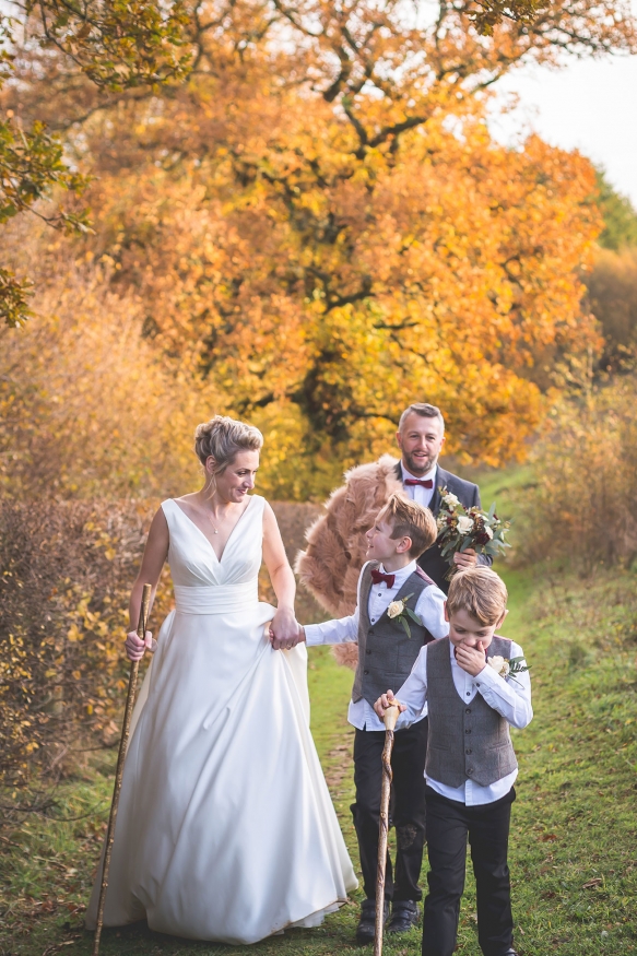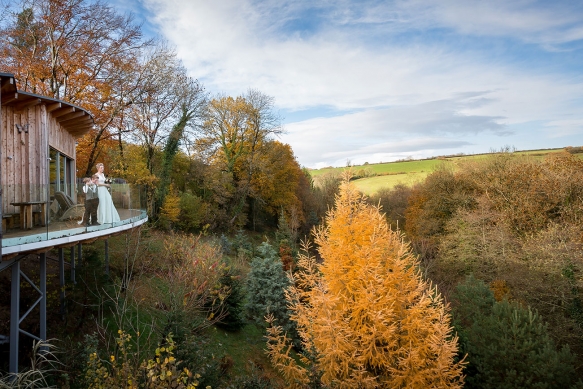 'We didn't want to borrow money or the fuss of a 'normal wedding' but we didn't want to scrimp on any of the magic either. The most important thing for us was that we were together as a family. While looking for ideas, I was blown away by pictures of Tree Top Escape. As we wouldn't have a honeymoon, the fact that we could have a weekend of luxury with our wedding in the middle massively appealed. I love the colour of the trees in autumn so, having decided that we wanted our tree house wedding, we were keen to do it when the trees were displaying their vibrant autumnal colours. We decided that it would be just the four of us and that we would keep it a secret, even from our sons. We picked them up at lunchtime from school and surprised them in the car on the way to Devon!'