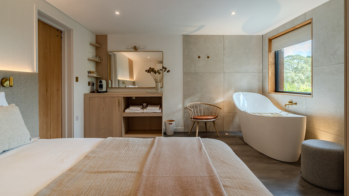 As if that wasn’t enticing enough, the venue has unveiled some brand-new accommodation options, allowing the newlyweds – and their nearest and dearest – to prolong the celebrations. Along with The Stalls – Scandi-style accommodation pods in a tranquil wooded glade that sleep up to eight – the venue has added two additional pods to the collection. Made for newlyweds, The Bower redefines honeymoon hideaways with its sumptuous bed, a standalone bath boasting countryside views and a spacious walk-in shower (finished to perfection with stylish gold accents). Then there’s The Nest, a family-friendly pod for up to four guests, spanning two storeys and featuring a mini kitchenette, The Nest cleverly merges convenience and comfort with modern clean lined design so your loved ones can relax in style – and make more cherished memories in this swoon-worthy spot.
