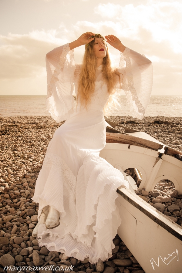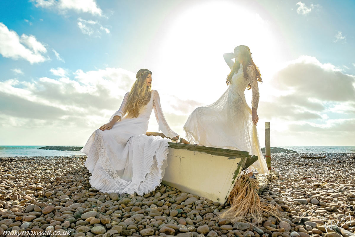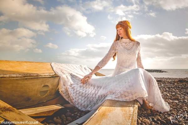 This photo shoot, which took place on the pebbles of Sidmouth Beach, captures the dreaminess of a Days of Grace bridal look. From the intricate lace detailing and ethereal fabrics to the glorious capes and striking headdresses, these captivating creations exemplify why this little boutique is the go-to for anyone envisioning timeless elegance and breathtaking individuality for W-day.