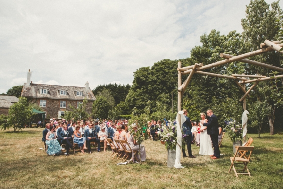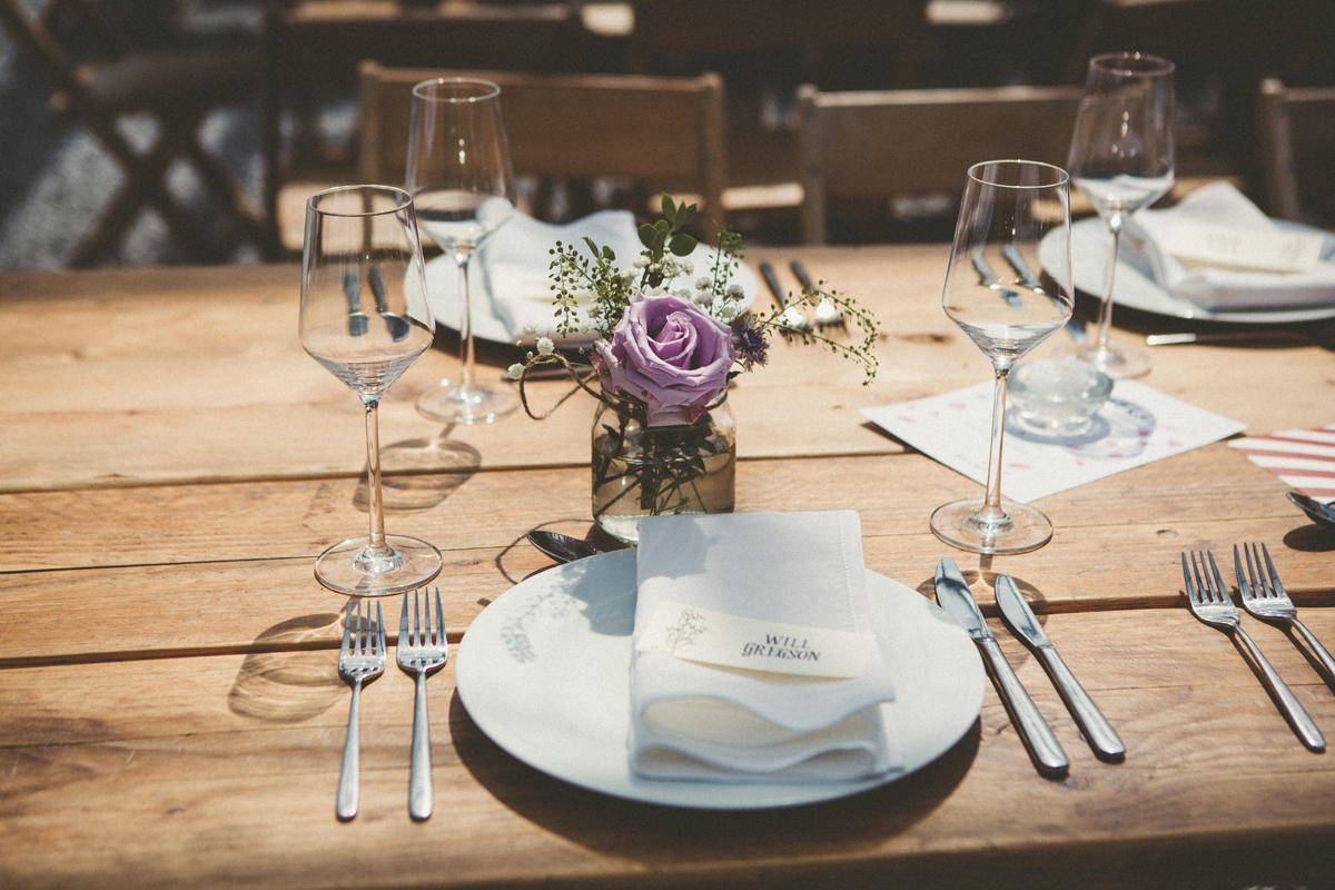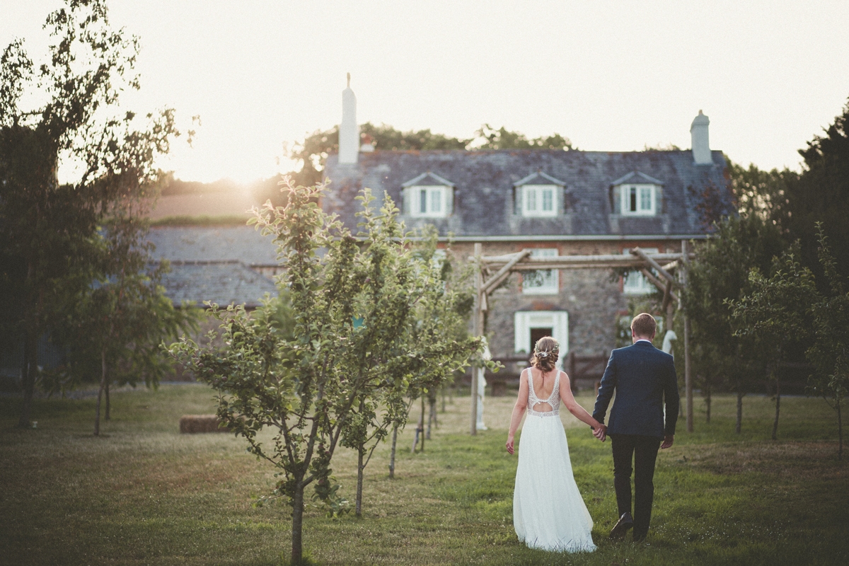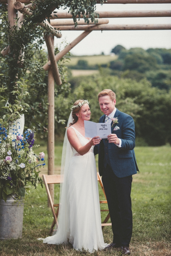 "Our outdoor ceremony in the bright sunshine amidst the gorgeous Devon landscape was a very special moment," says Katie. "The glasshouse was a beautiful and special space in which to have the breakfast: full of light and plants. We also liked the secret parts of the venue, which made it an interesting social space and were proud of all the handmade touches that gave it a personal feel."