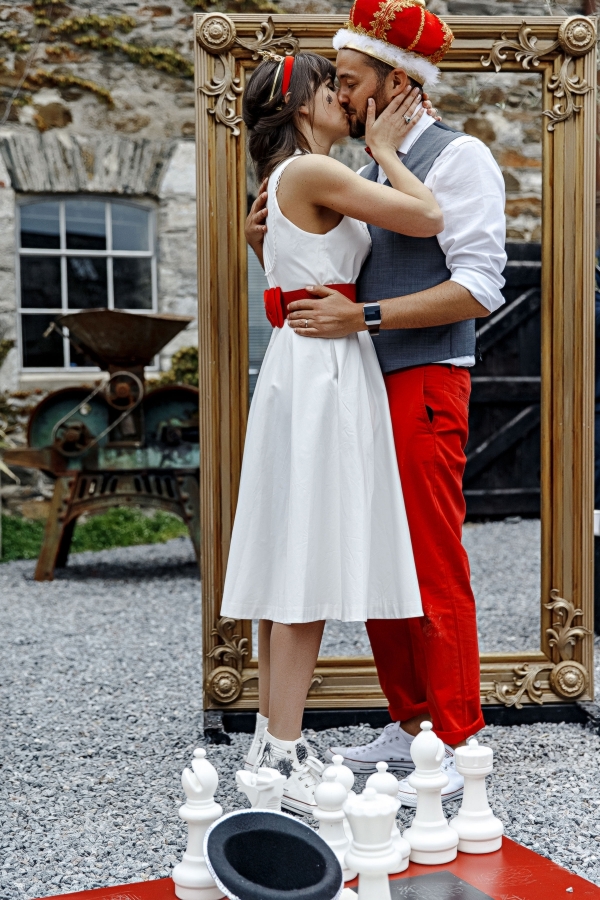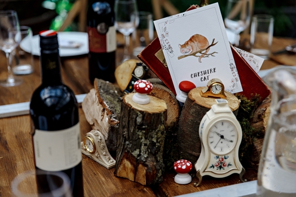 Anran at Tidwell Farm provided the blank canvas to stage their themed celebrations, with The Prop Factory helping to create a striking 'Wonderland' inspired space for the couple to fully indulge their imaginations.