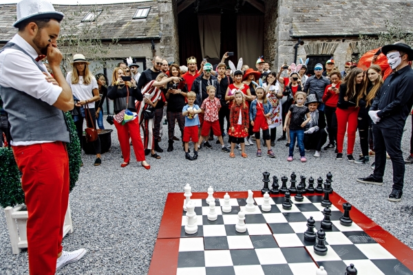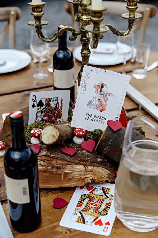 "Guests were asked to wear black or red, like a deck of cards," says Anastasia. "On arrival, each guest was given a card from the deck as they entered through a giant keyhole, and this separated them into a card suit that they would belong to for fun and games."