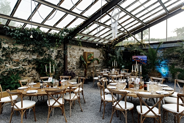 Choosing to throw a three-day wedding celebration, the couple selected a series of venues for each stage of the festivities, the first being St David's Church in Ashprington where they were officially wed before enjoying post-ceremony drinks and classic British canapes at neighbouring pub, The Durant Arms.