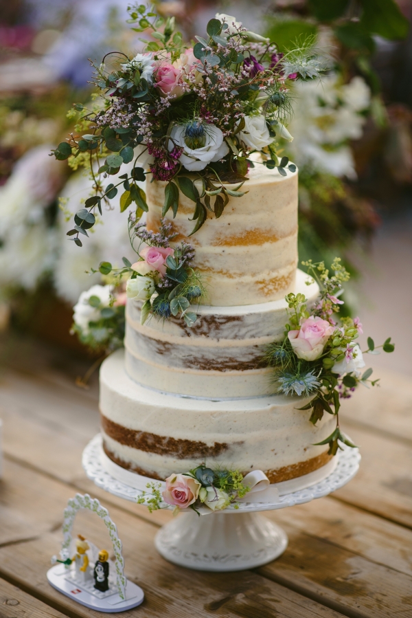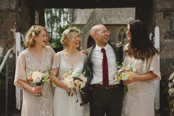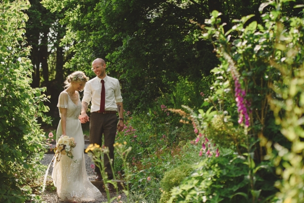 Seasonal blooms such as veronica, astrantia and thlaspi featured in the table arrangements, vintage crates and the gorgeous bridal bouquet. Also donning delicate florals in her hair, Fran oozed relaxed elegance in her Jenny Packham gown, while Grant's tweed attire carried the rural aesthetic in style.