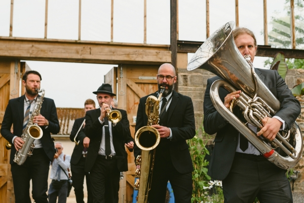 The entertainment was similarly crowd-pleasing. The Brass Junkies kicked off the musical medley with their Mardi Gras-inspired sounds and were followed by DJs The Allergies. "They mix vintage sounds with influences from funk, soul, disco, hip-hop and breakbeat," explains Fran. "They were absolutely brilliant and no one left the dance floor the whole evening!" A homemade Polaroid photo booth also entertained guests, who tucked into Tom's Pies, a cheeseboard and a delicious wedding cake with a Malteser pi�ata layer.