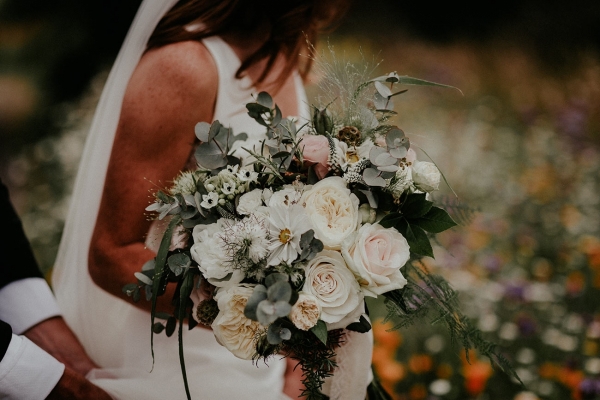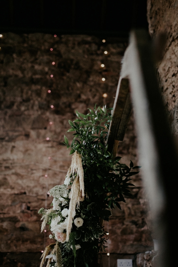 Inspired by the setting, Lilly and Garth used floristry to achieve an individual look, which featured neutrals, light pinks and lots of foliage.