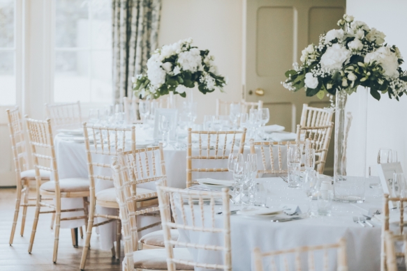 "Our colour theme was everything neutral, so all of our flowers were white and cream. I had hydrangeas, peonies, spray roses, avalanche roses, gypsophila, carnations, lisianthuses and alstroemeria, and these were styled alongside white pearlescent candles, and clear crystals scattered across the tables."