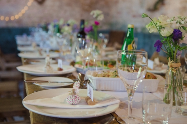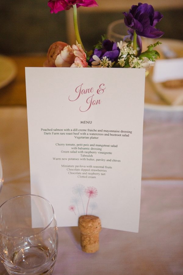 Following a beautiful ceremony featuring carefully selected readings - "we chose 'Atlas' by U.A. Fanthorpe who is from Jon's parents' village, 'Scaffolding' by Seamus Heaney as I'm Irish and 'Us Two' by A. A. Milne," explains Jane - the newly-weds and their guests headed outside to enjoy some bubbles, canapes and sunshine in the water garden. "The relaxed and informal speeches in the garden before the meal worked a treat," reflects Jane. "It was a special moment sharing laughs and some poignant moments with our closest family and friends."