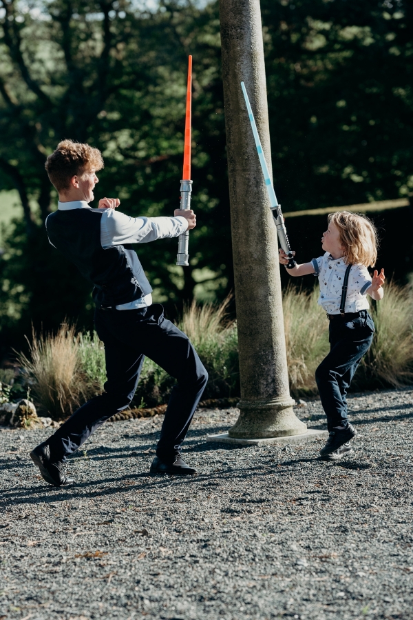 "We both had such an amazing day," reflects Nikki of their eclectic, crowd-pleasing day. "Our guests' faces, the amazing weather, all the hugs and laughter, the space hopper races, lots of dancing... But we both agree that the very best part of the day was our first look when I walked down the staircase. We didn't realise how emotional that would be!"