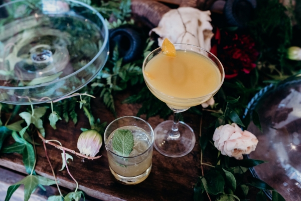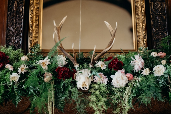 "We love taxidermy and animal skulls and have a couple in our house as decor so decided to use a subtle skull motif throughout," says Nikki, whose industry contacts helped provide the stunning array of furniture, props and floristry.