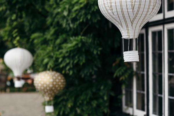 "We wanted the fun, fairground theme to be present throughout the day, tying in our love of the film Adventureland," she explains. A riot of colourful balloons paid tribute to another of the couple's favourite films, Up! while their love of travel - in particular, Japan - was also reflected in the decor. "Colours were kept bright and glints of gold glitter became my favourite thing!" says Emily.