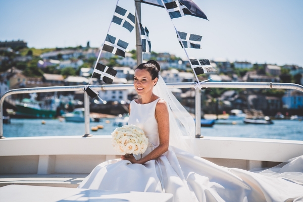 "The ceremony was so personal," she says. "One of my favourite parts was when my mum read out an extract from 'The Wind in the Willows'. It is thought that Fowey was the inspiration for the book and it was written at Fowey Hall. When we came out of the church, we walked through the streets of Fowey with our 100 guests following behind us. The streets were lined with people, all the residents and shopkeepers had come out to see us! We reached the quay and stood at the top of the steps for a kiss and a wave to our guests before our newly-wed cruise!"