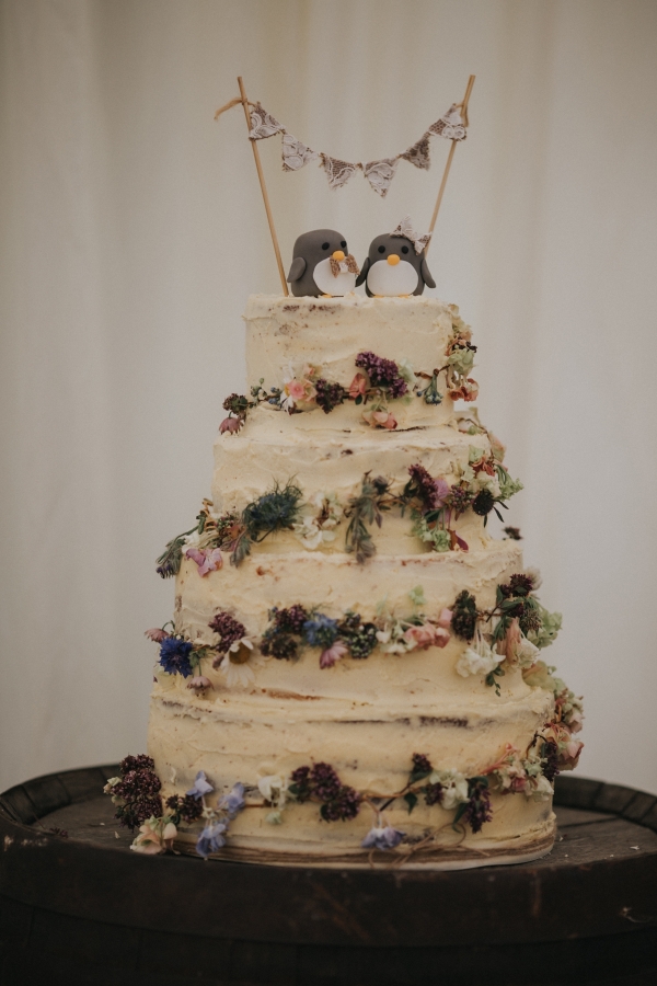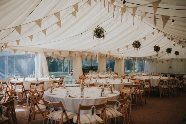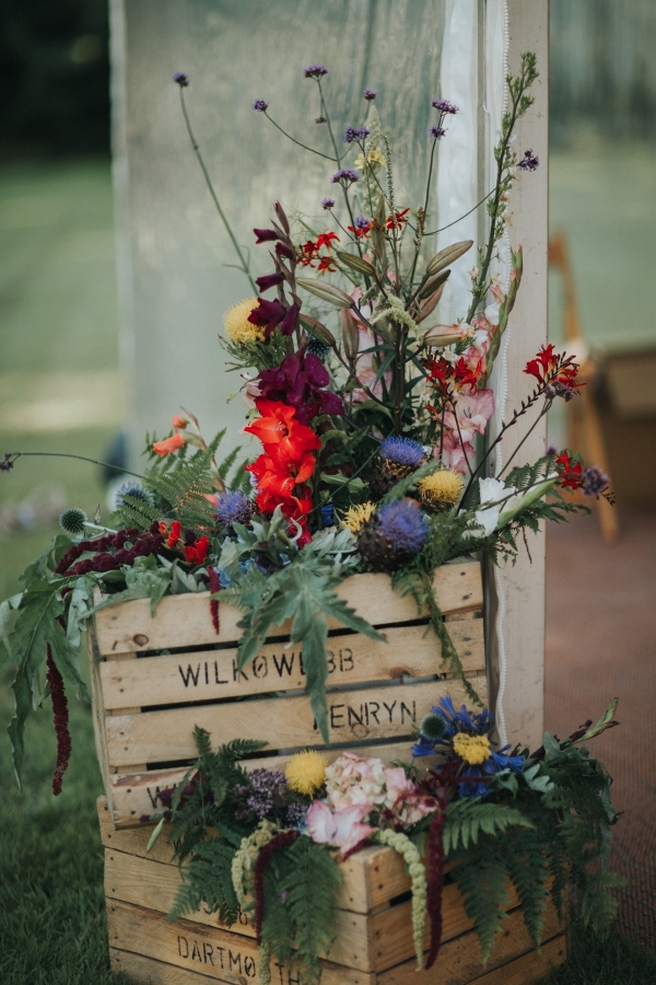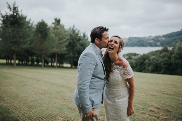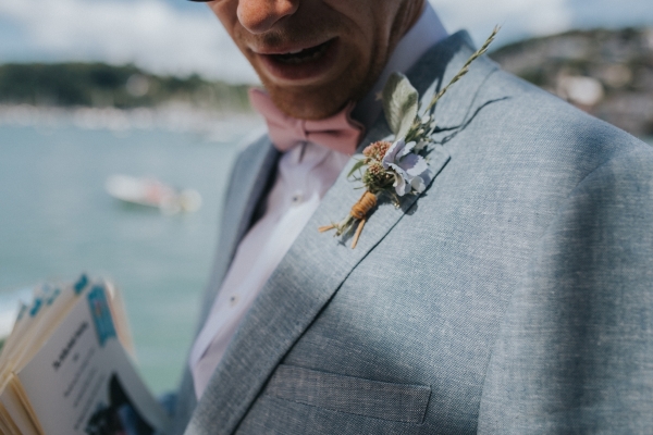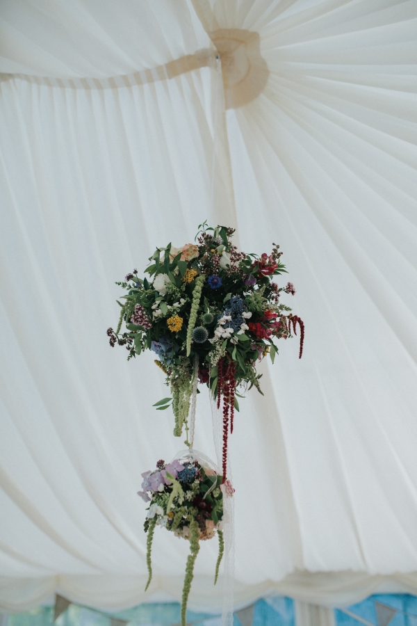 Selecting a palette of blues and corals, the decorations were very much a team effort: the flowers were grown and arranged by Lewis's mum, who runs The Cornish Cutting Garden, while the lace and hessian bunting was made by Claire's mum.