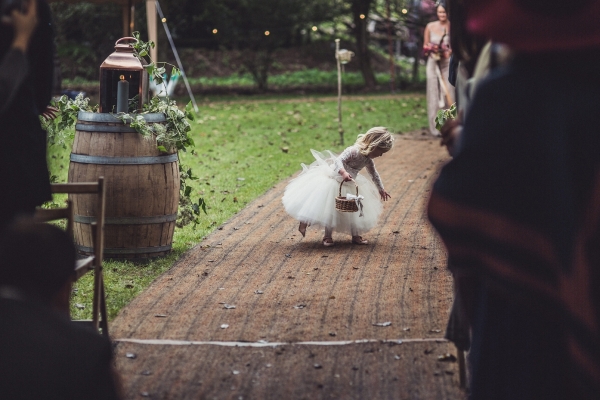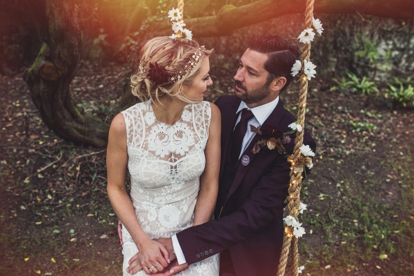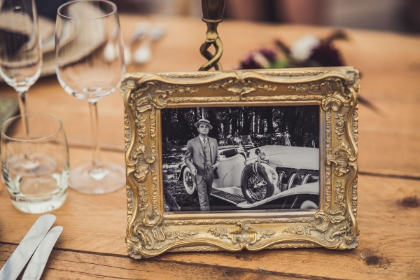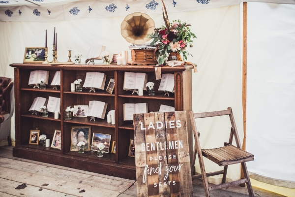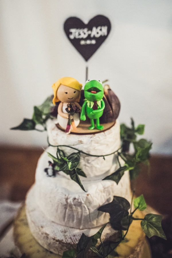 While carefully chosen vintage furnishings and props brought the rustic vibe to life, it was the personality-packed details that brought a distinctive and dazzling touch to their day. The couple combined Jessica's love of movies and Ash's love of books for the table plan, which was a homage of movies adapted from books. Jessica commissioned their own unique signage, logo, badges, a newspaper and a special gift to Ash - "a handmade personalised 'wedding bar' that will eventually go into our house," each of which created show-stopping, much talked-about centrepieces. And, as she also runs a side business in making personalised characters and toppers (ohmyhero.co.uk), the creative bride even crafted their personalised cake topper.