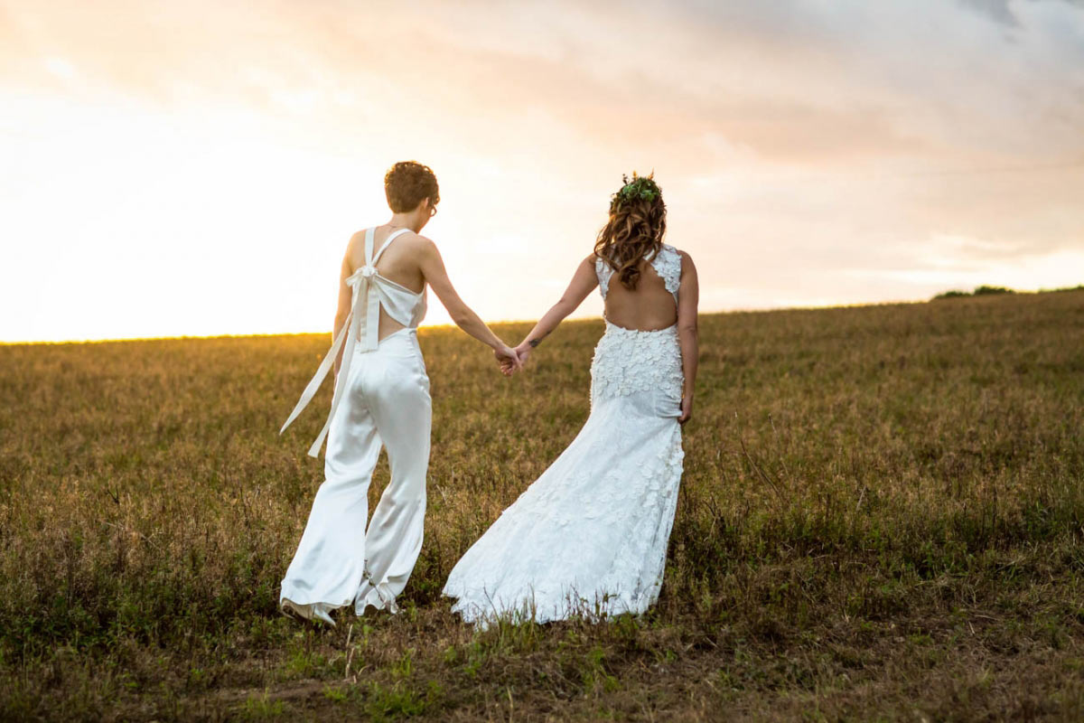 Two years after their cross-Atlantic relocation, Tamsin set the scene for a surprise proposal at the couple's home. "Jessie arrived home to the flat transformed into a relationship memory box: candles lit, photos of us hanging everywhere and wine, confetti and fairy lights. I got down on one knee and she said yes right away, then we sat back to reminisce, cuddle and form big dreams for the wedding day."