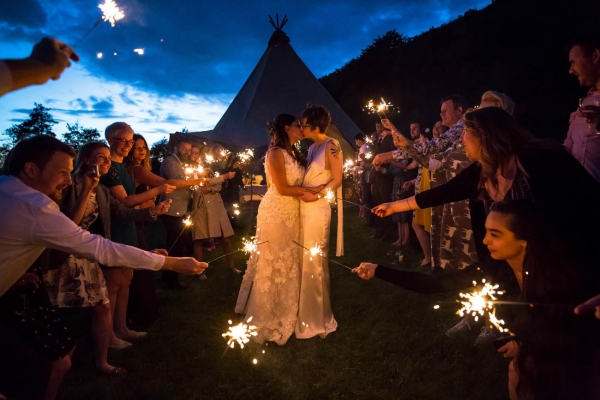 At dusk, a magical sparkler send-off saw guests line up along a beautiful aisle of light before the disco kept the party in full and fabulous swing until the stroke of midnight.