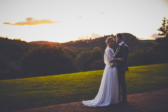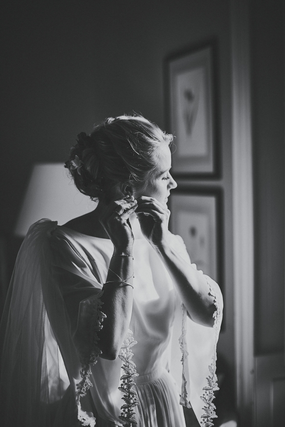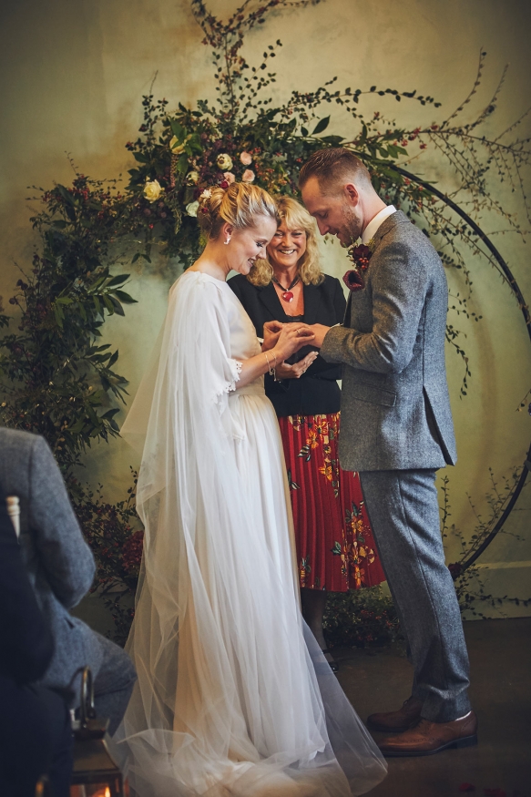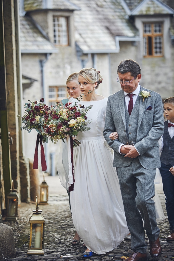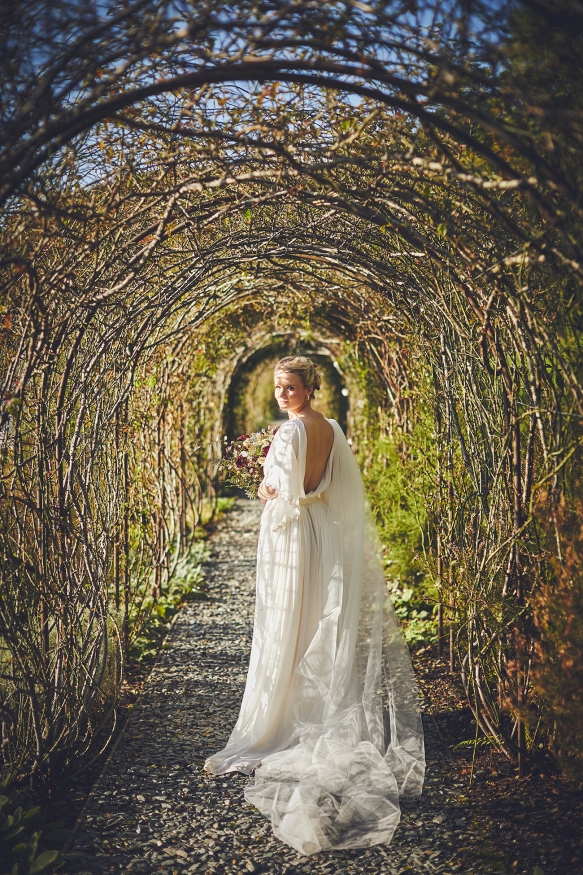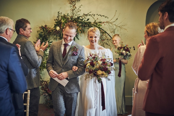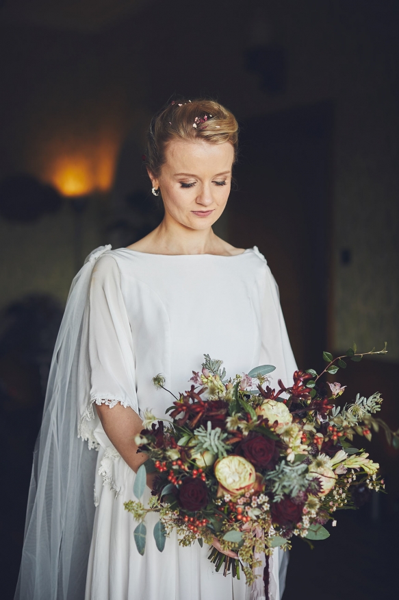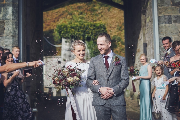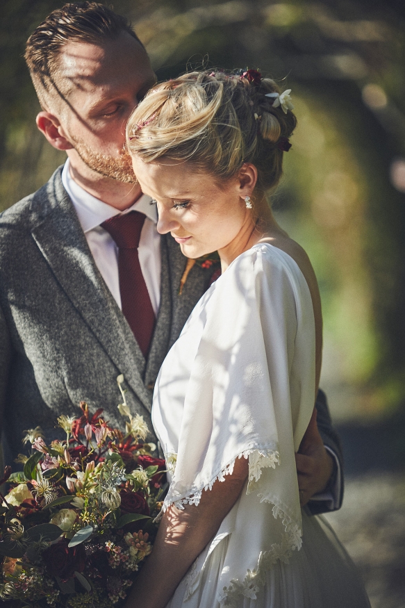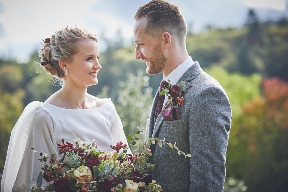 Having celebrated Sarah's dad's retirement party there the previous November, an autumn wedding at Hotel Endsleigh was promptly decided upon. 'We remembered how the gardens ' which are spectacular at any time of year ' were a complete riot of autumnal colour; the foliage all burnt orange, browns and reds and burgundy. There was the smell of wood smoke in the air, the open fire and the crack of gunshot from the local shoot. It all melded into this wonderfully calm and understated atmosphere that we wanted to capture for our wedding day,' explains Sarah.