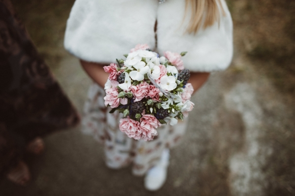 Rejecting a strict theme, the couple focused on their individual likes in order to create a day that effortlessly mirrored their characters. "Simplicity was the key for us," says Steven, who merged wild English flowers with clean white tables for a beautifully elegant aesthetic.