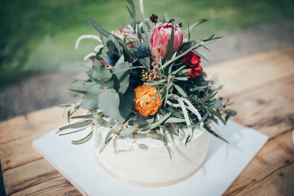 A focus on floristry beautifully combined the couple's heritage with eucalyptus, kangaroo paw, craspedia and banksia paired with local Cornish blooms. "At the very last minute I asked our florist to add some giant protea, which blew all the guests away!" adds Laura.