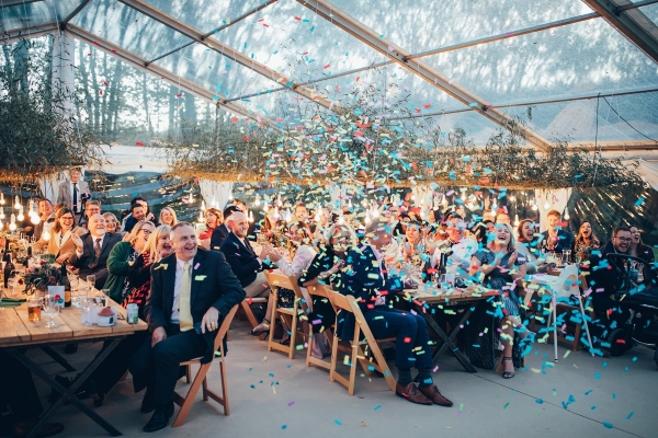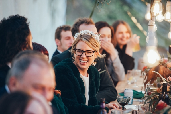 After the ceremony, guests were greeted with a grazing table, alongside a Campari bar and a bathtub full of craft beer from one of their favourite London breweries, Belleville. Foodies Laura and Elliot also wanted the gastronomy to take centre stage, and they carefully planned a menu to suit. Starting with sharing boards 'from the sea' including gin and beetroot cured salmon, smoked mackerel p�te and hand-picked Dartmouth crab, 'from the land' mains of slow-cooked beef cheek, roast rump of lamb and roasted potatoes were then served alongside a selection of vegetarian, vegan and gluten-free dishes.