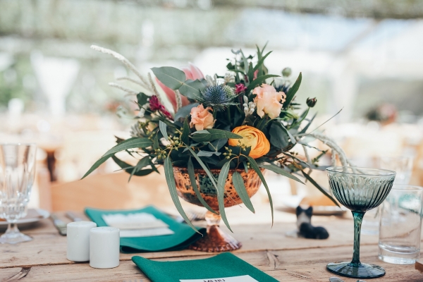Taking the films' style as the inspiration for their wedding, the couple also wanted native Australian flowers to feature in homage to Laura's roots. "As the wedding evolved over the 22 months we were engaged, we landed on an autumnal/native Aussie colour palette," she explains.