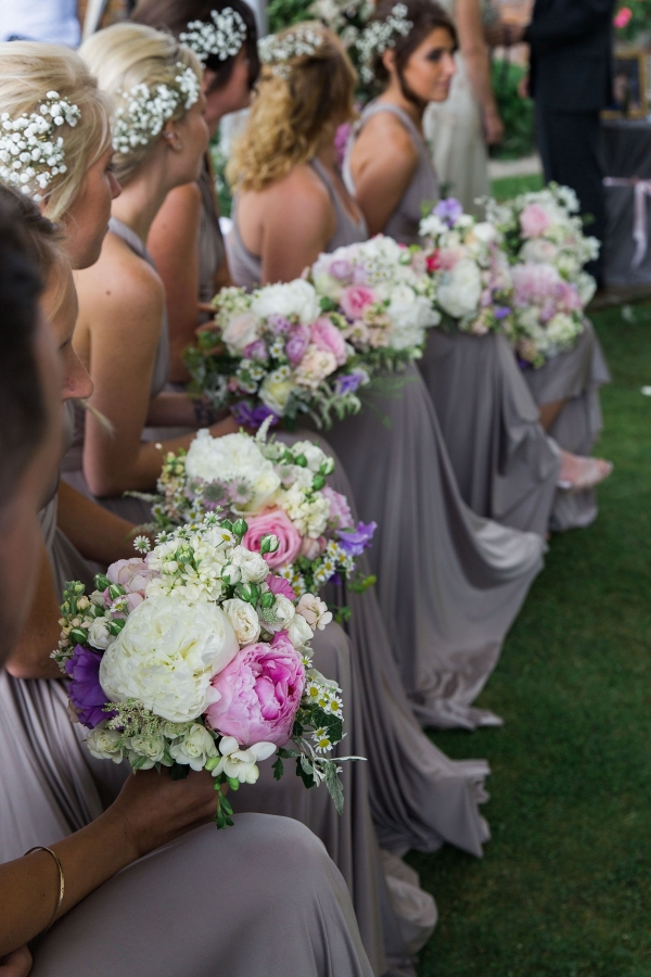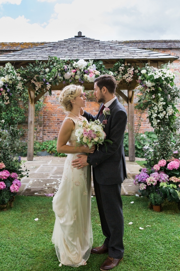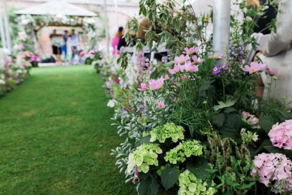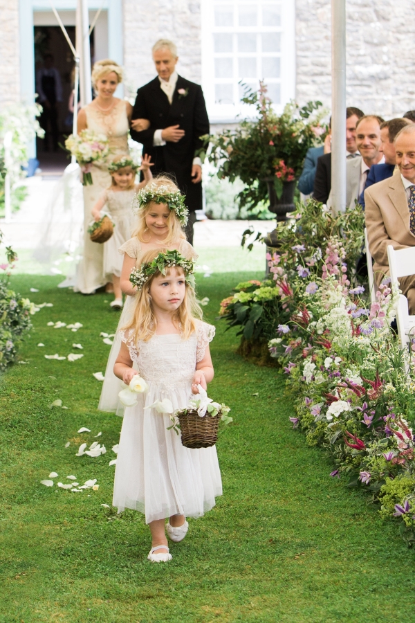 Flowers played a key role in setting the mood, particularly for the ceremony. "We wanted the day to have an inside-outside feel and we created a living aisle so it looked as if the flowers were naturally growing out of the ground as if to line my pathway," Alice says of her walk towards her husband.